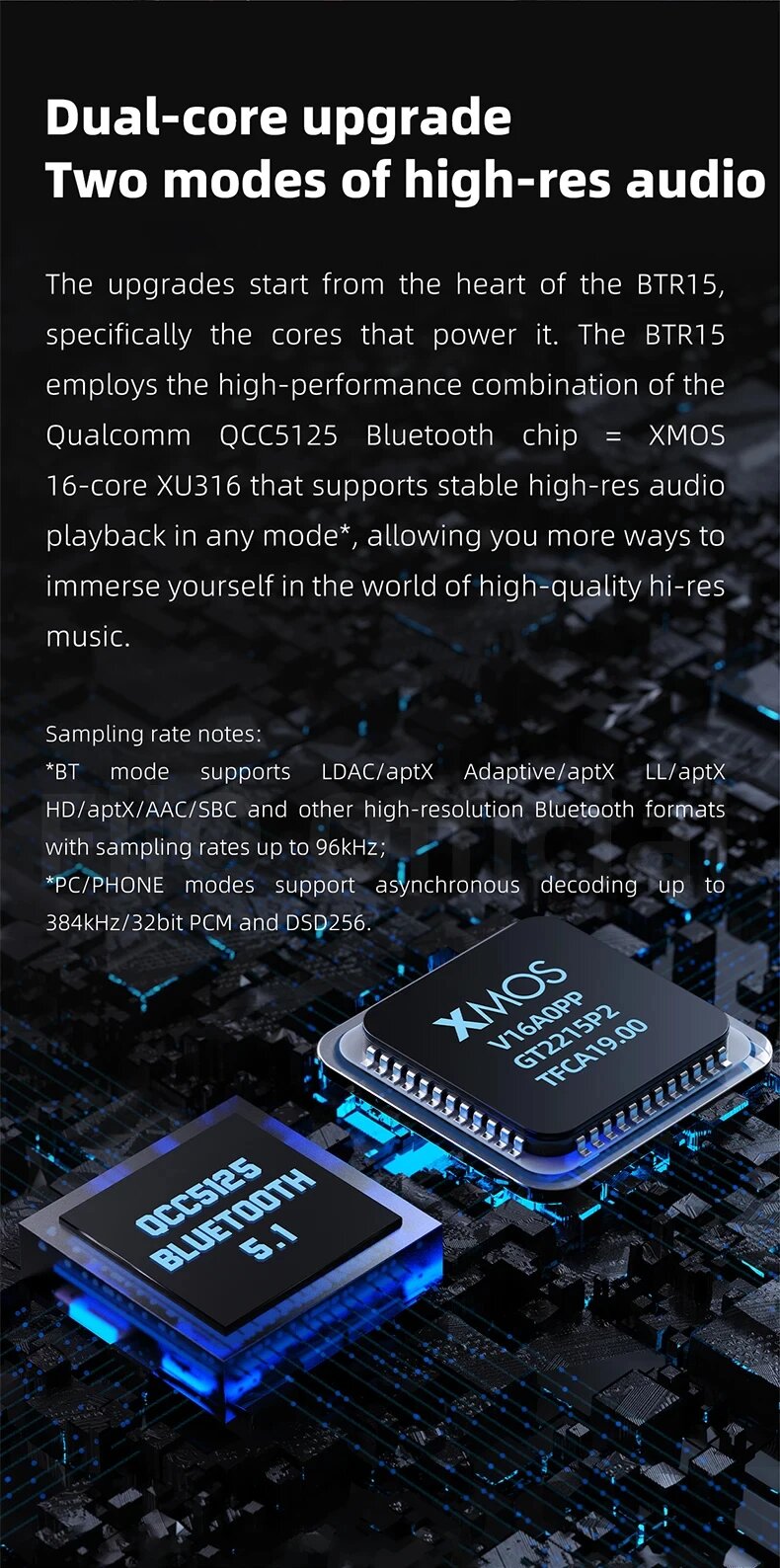 | Дополнительная информация | FiiO BTR15 также оснащен большим ярким экраном— великолепным 0.96-дюймовым OLED-дисплеем. |