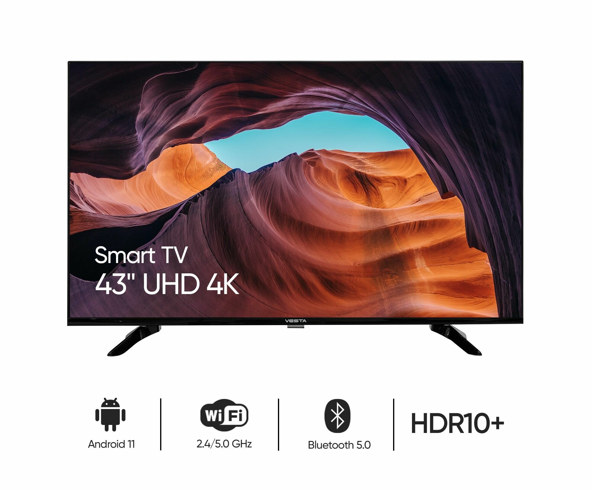 Телевизор VESTA 43V3500 43" 4K SmartTV UHD HDR 10+, BT 5.0, Wi-Fi 2.4-5 ГГц, черный