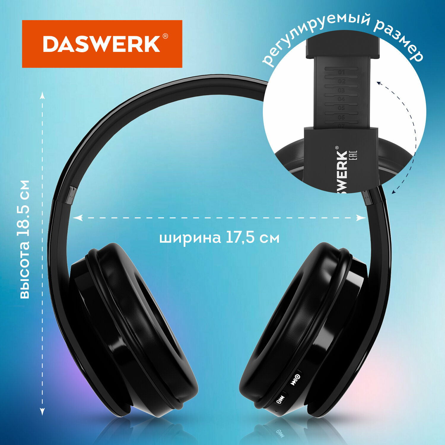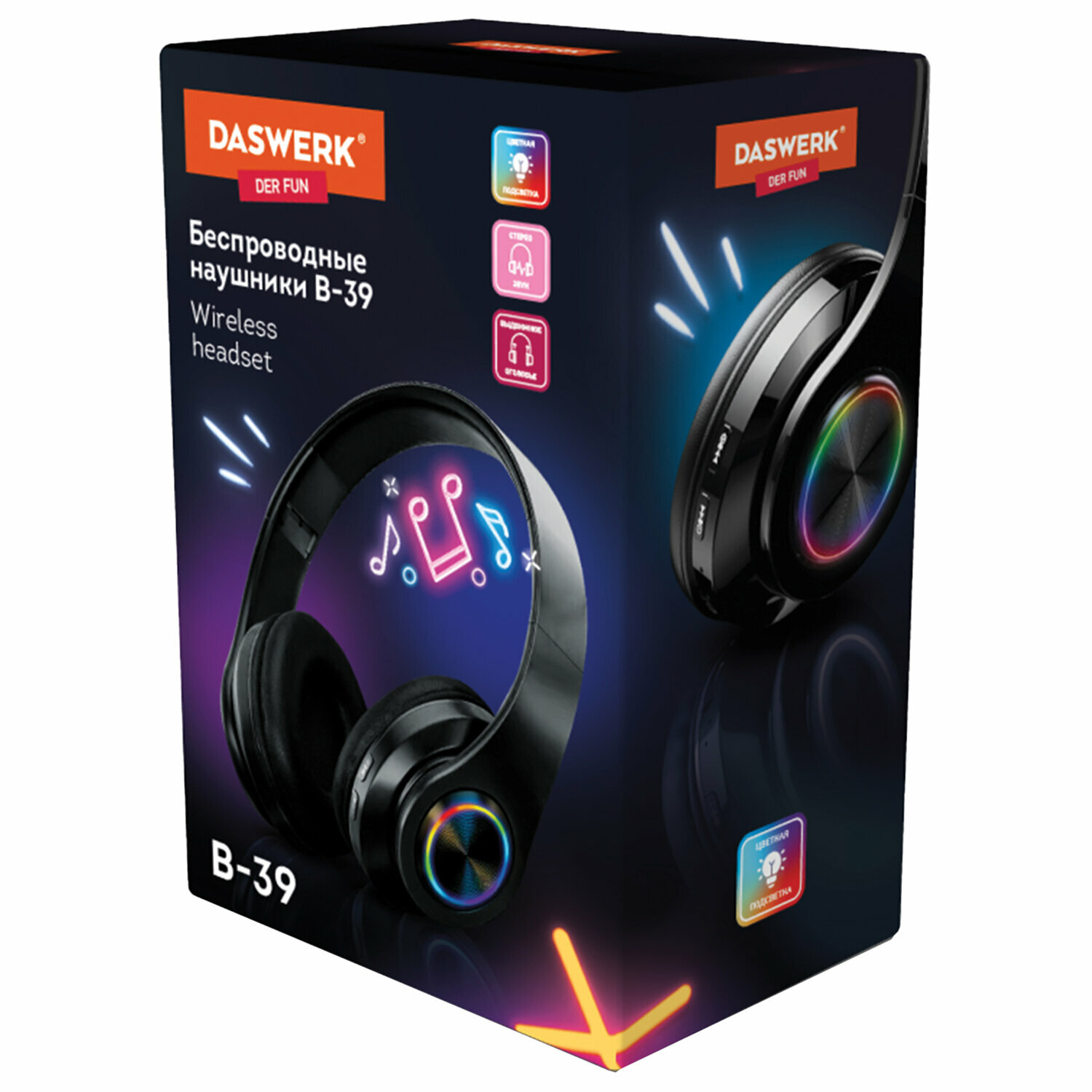 Наушники беспроводные большие светящиеся накладные, чёрные DASWERK B-39, 513805 1 шт .