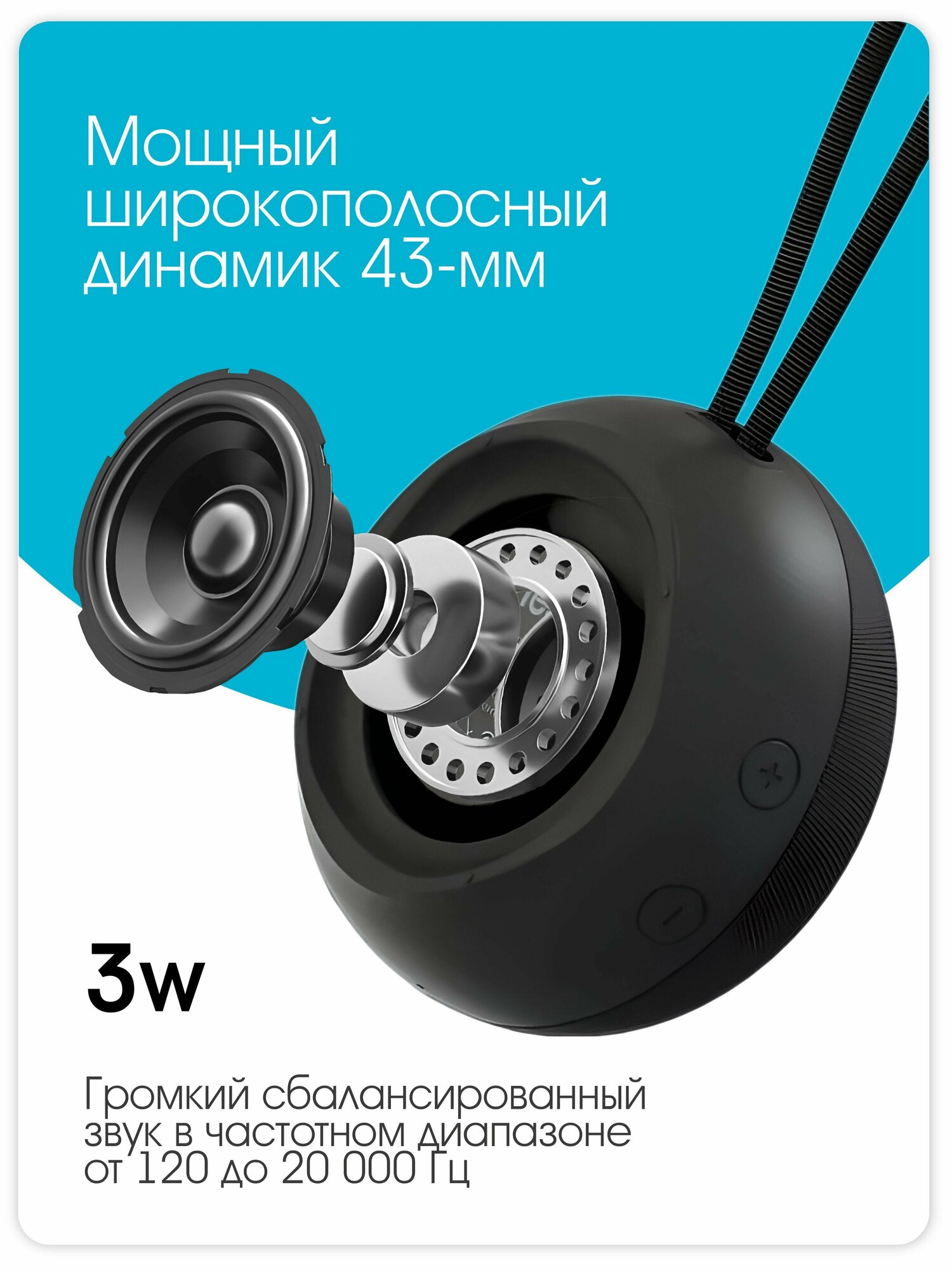 Портативная колонка Leef MW-SW-B007, 3 Вт, microSD, до 12 часов, TWS, 800 мАч, черная интересное: