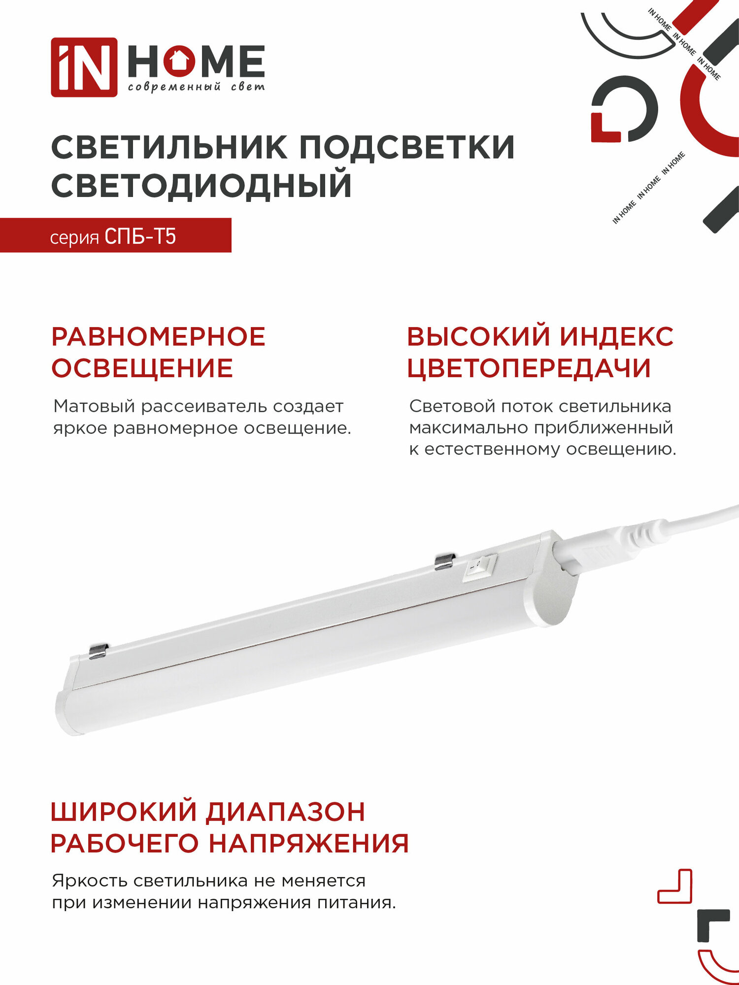 Линейный светильник IN Home СПБ-Т5 7Вт 6500К 230В 630Лм 600мм 4690612012230