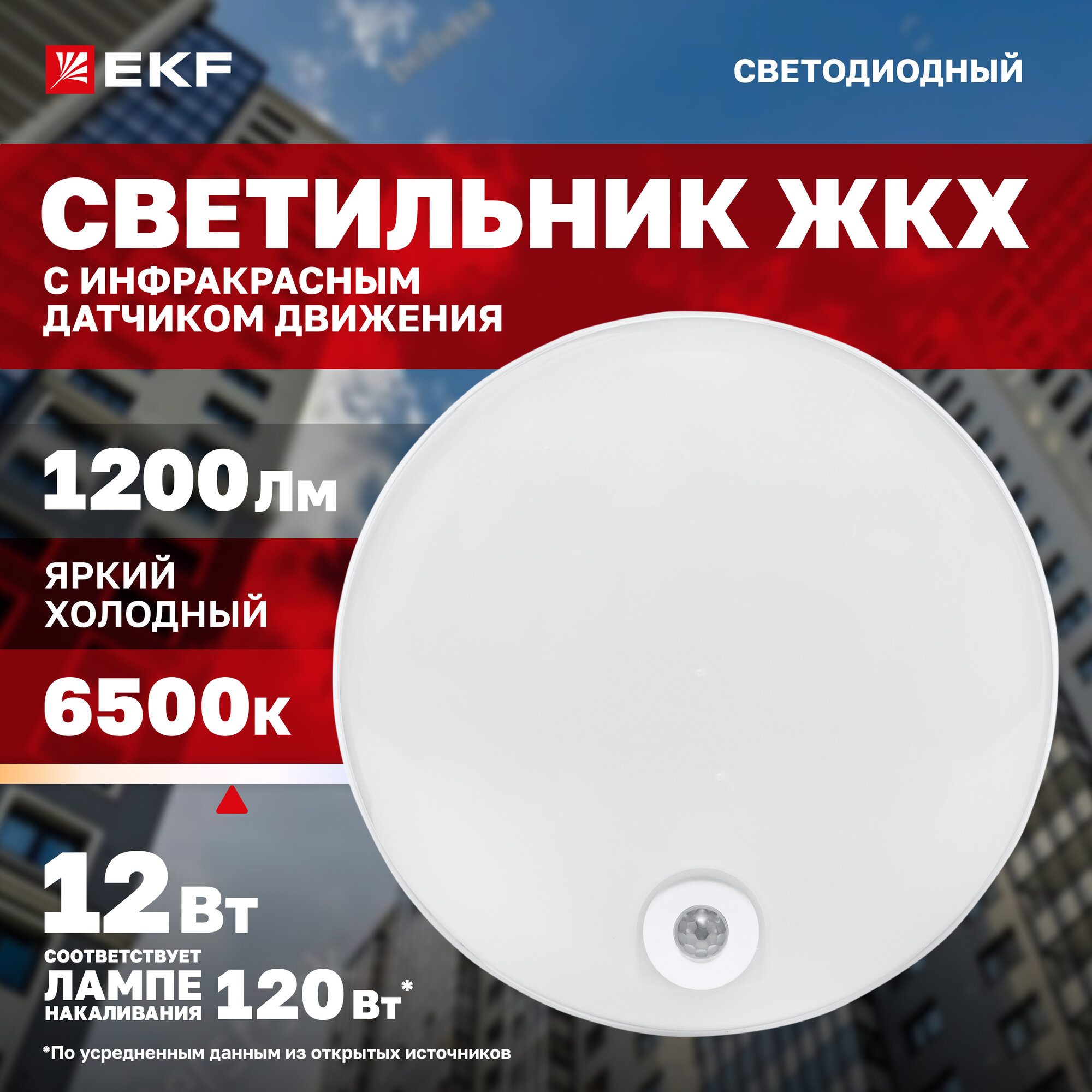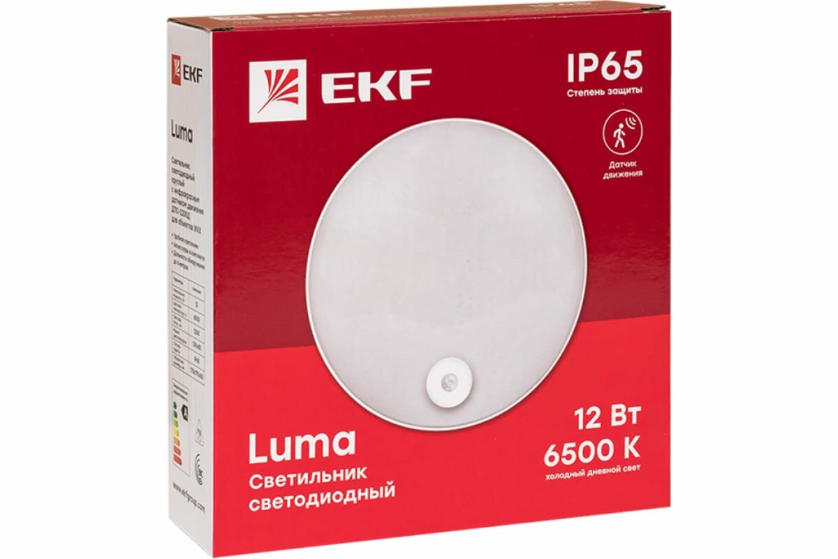 Светильник светодиодный ЖКХ круг ДПО-2200 с инфракрасным датчиком движения 12Вт 6500K IP65 LUMA EKF
