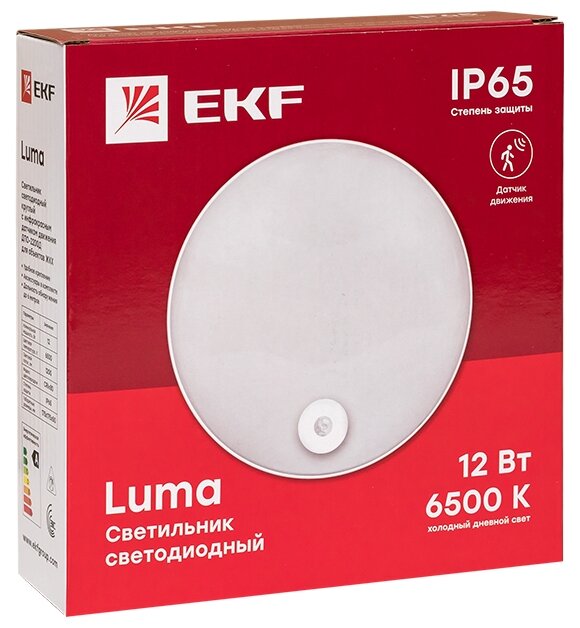 Светильник светодиодный ЖКХ EKF LUMA ДПО-2200 с инфракрасным датчиком движения 12Вт 6500K IP65