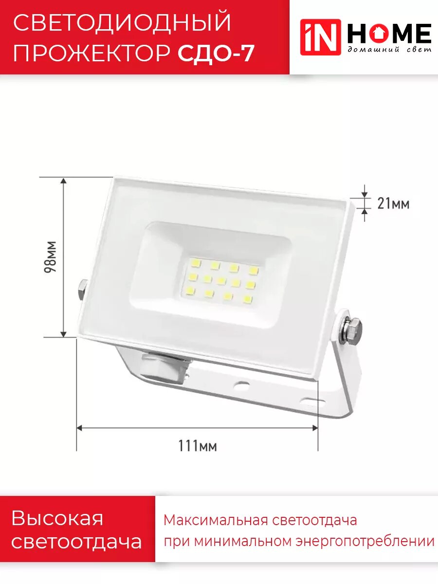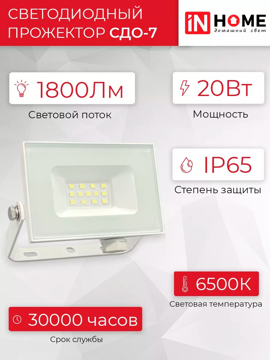 Прожектор светодиодный IN HOME СДО-7, 30 Вт, 230 В, 6500 К, IP65, белый