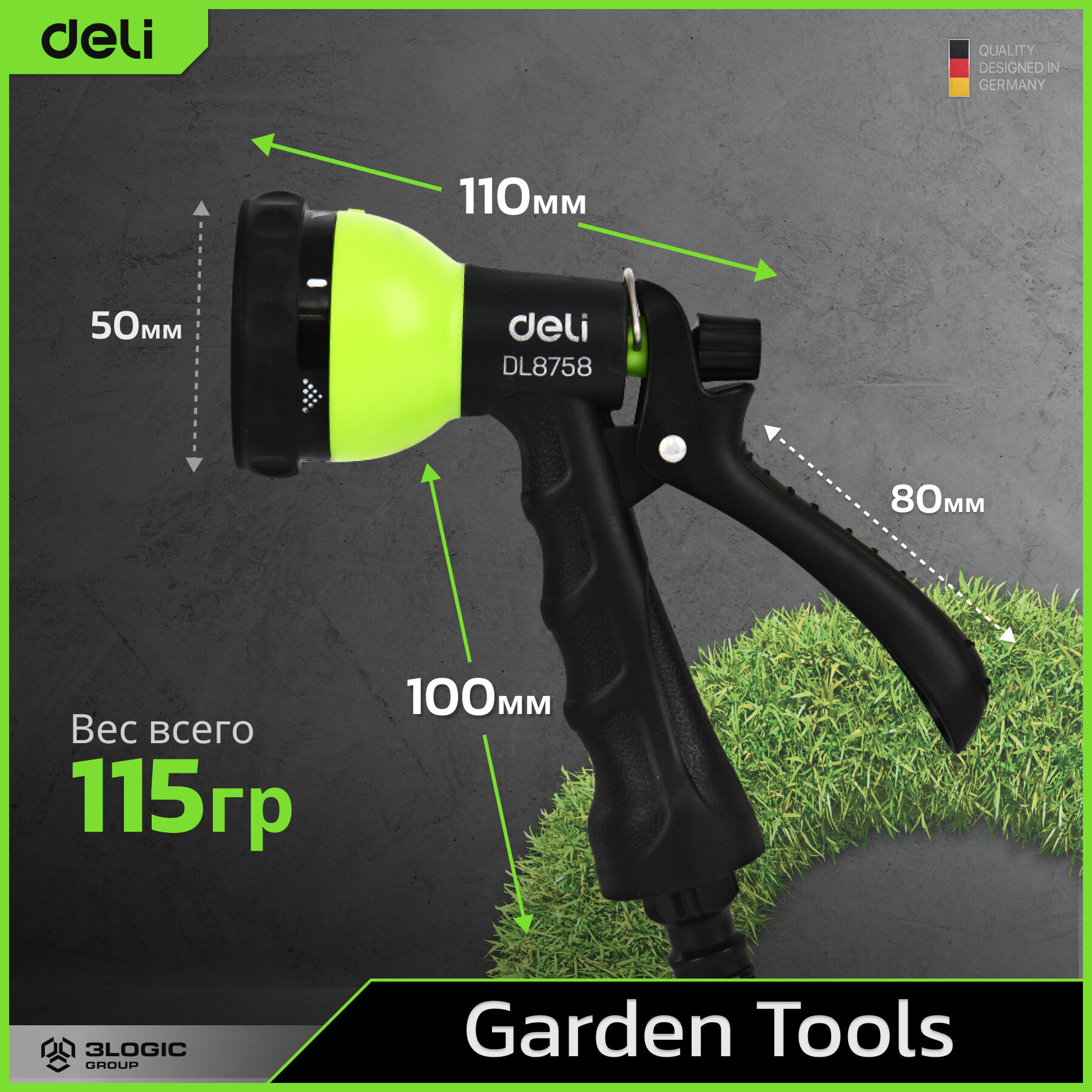 Купить Опрыскиватели Deli Пистолет-распылитель поливочный Deli DL8758 7 режимов распыления, диаметр шланга 3/4", пластиковый корпус