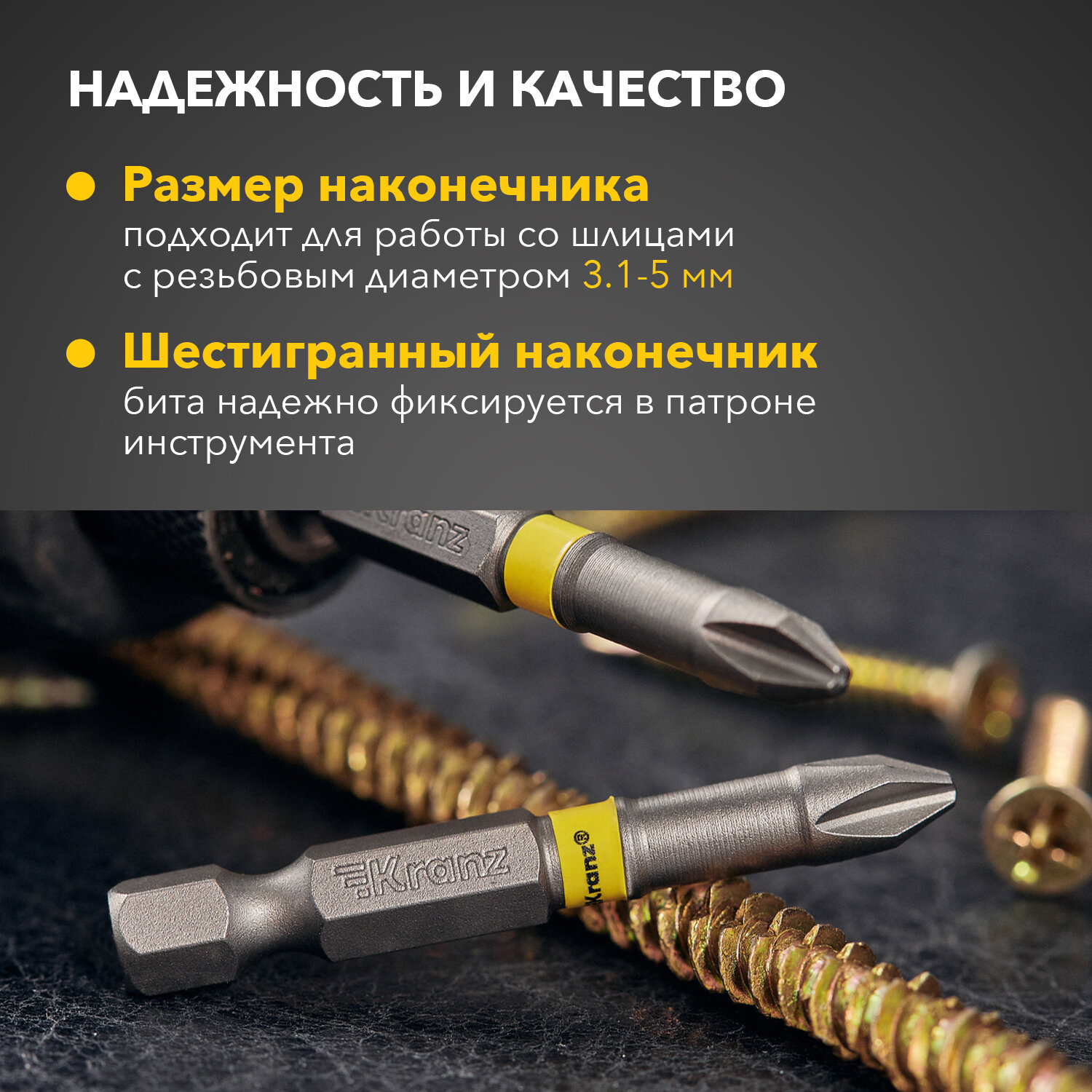 Купить Бита износостойкая для шуруповерта KRANZ с магнитным наконечником PH2х50 мм, 2 штуки