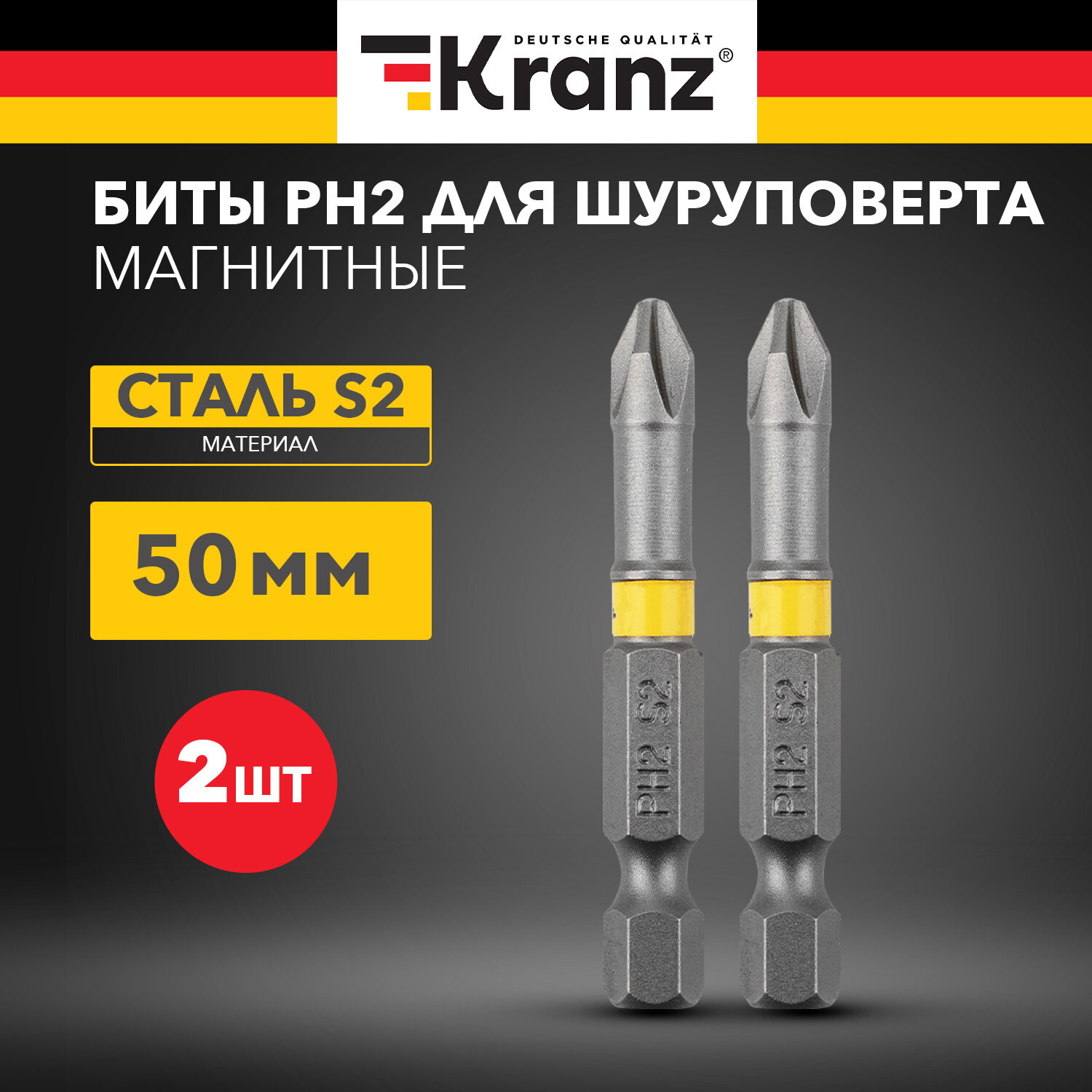 Бита для шуруповерта PH2х50 мм (2 шт./уп.) Kranz