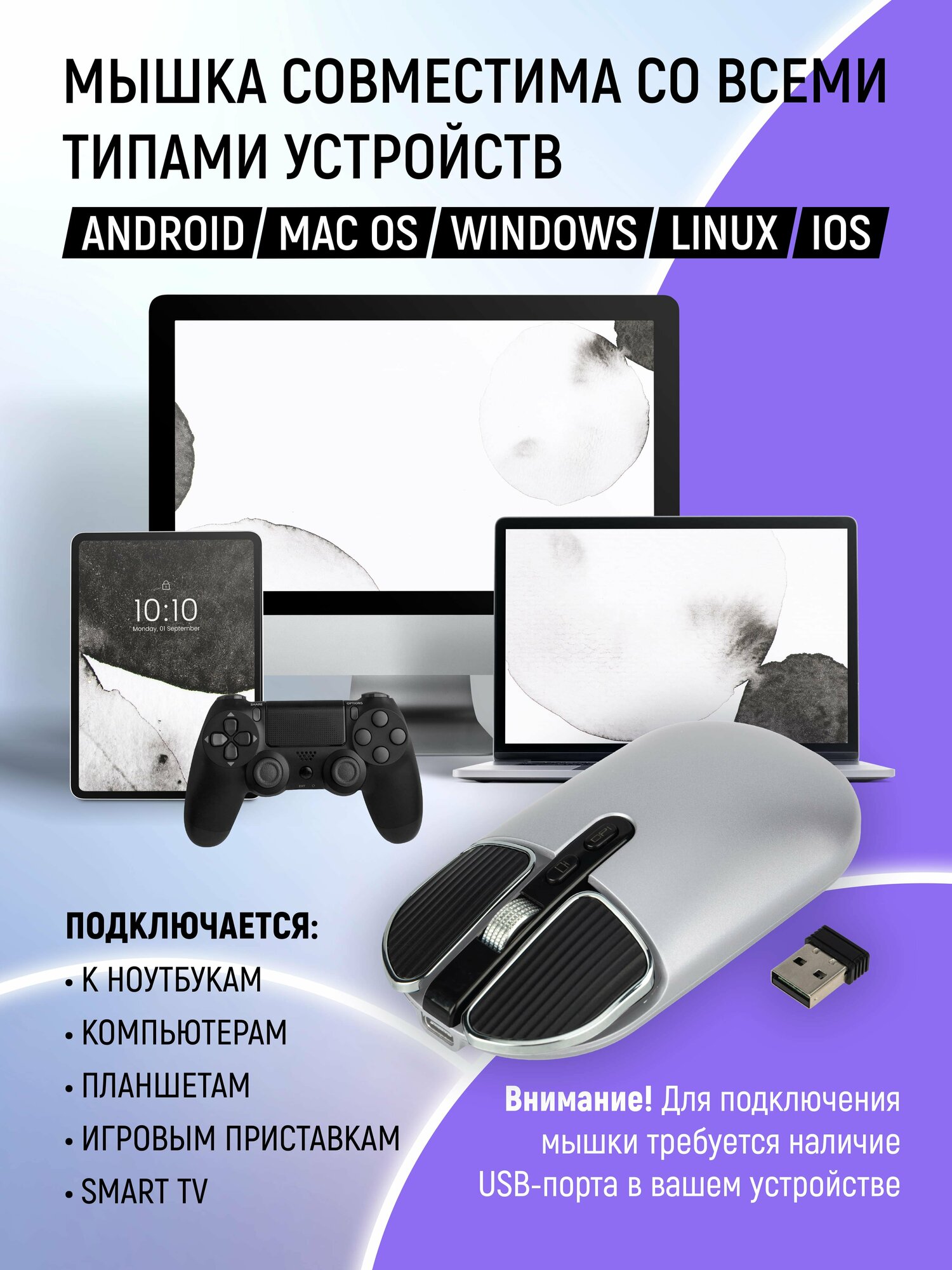 Беспроводная мышка компьютерная серебристая, для ноутбука, для игровой приставки интересное: