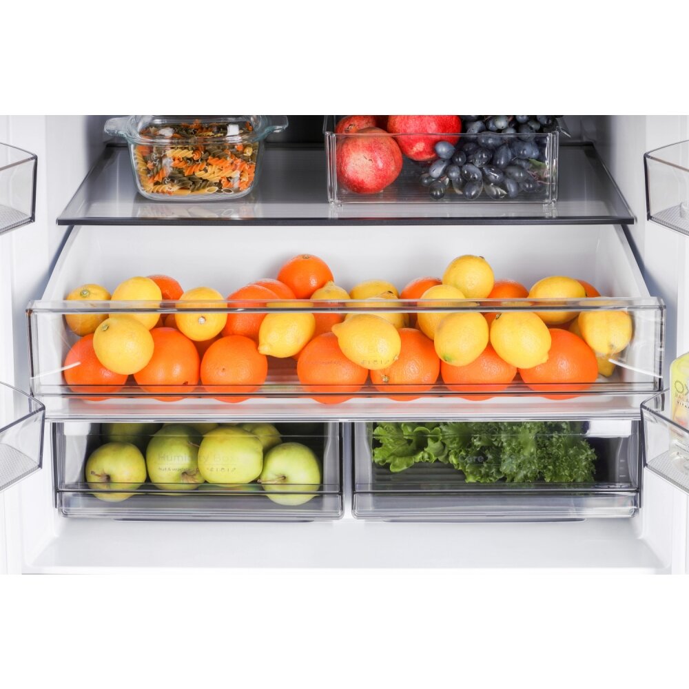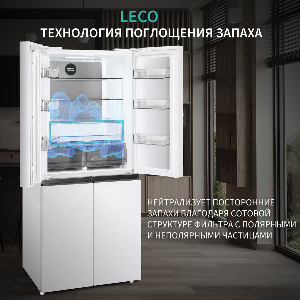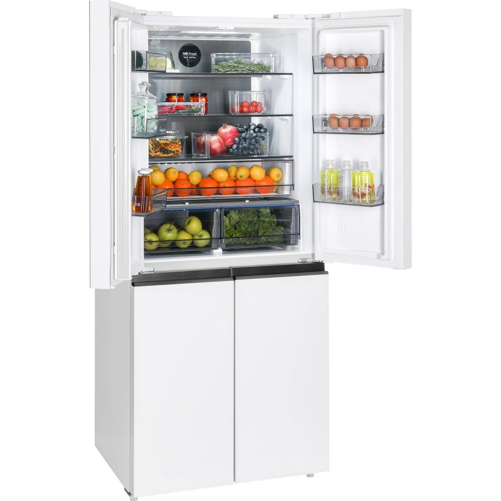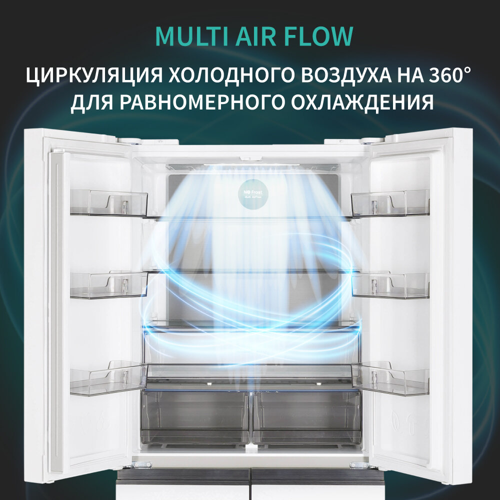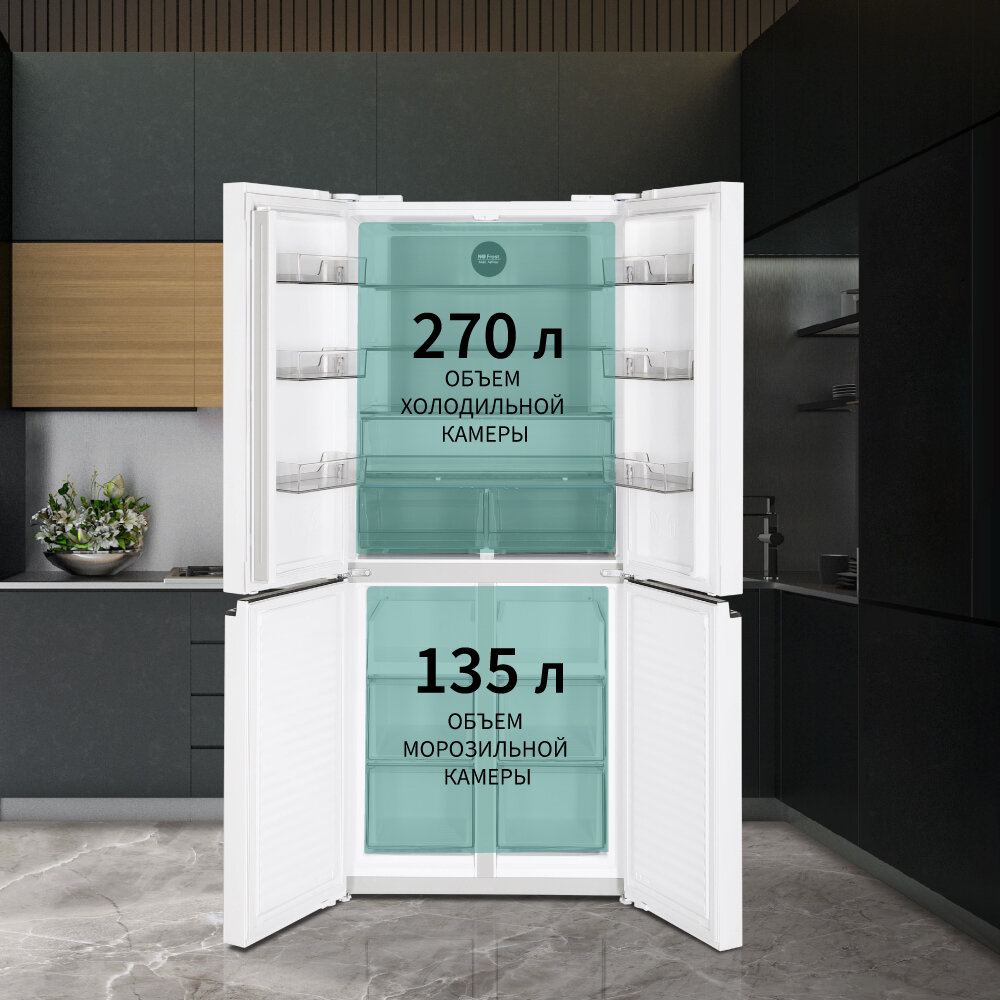 Холодильник NORDFROST RFQ 450 NFGW, 4 двери, инвертор, объем 451 л, индивидуальная зона свежести и контроля влажности, цвет «белое мерцающее стекло»