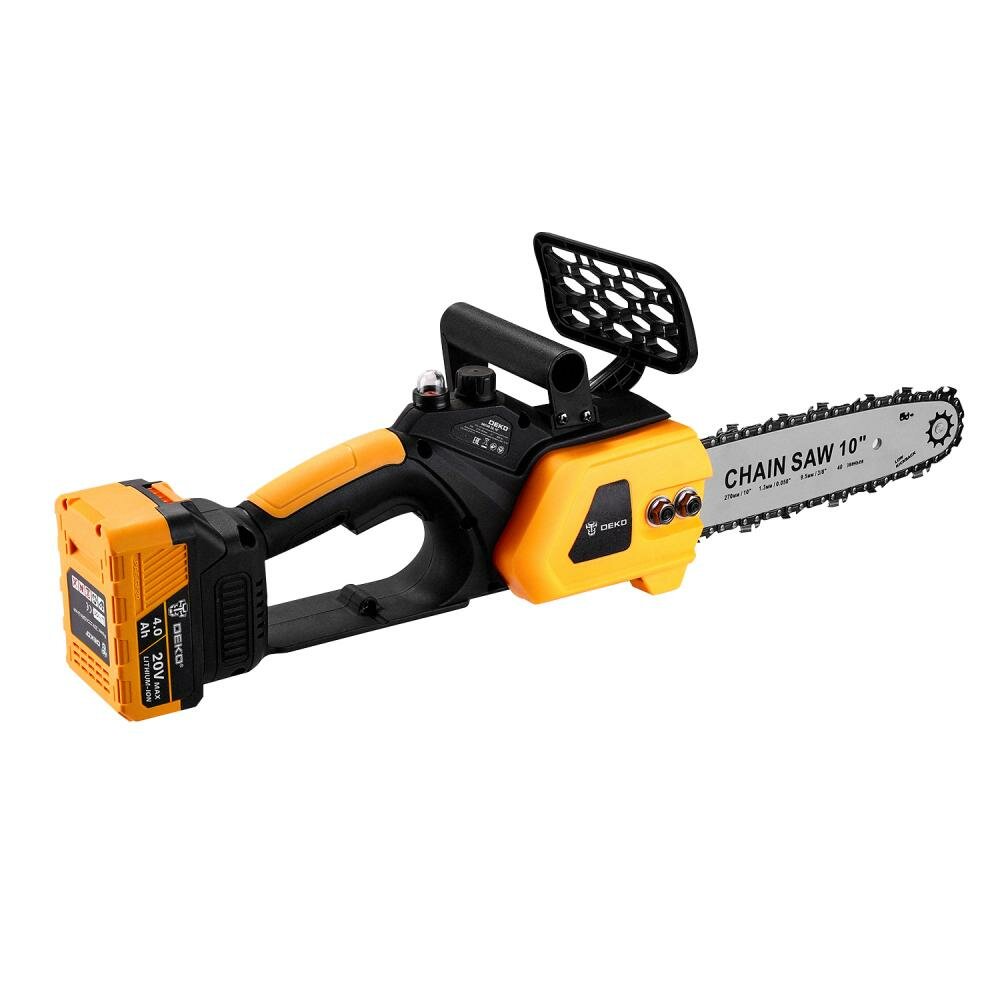 Купить Пила цепная аккумуляторная бесщеточная Deko Dkchs 20, 10", 20В, 1x4.0Ач, з/у 083-2000