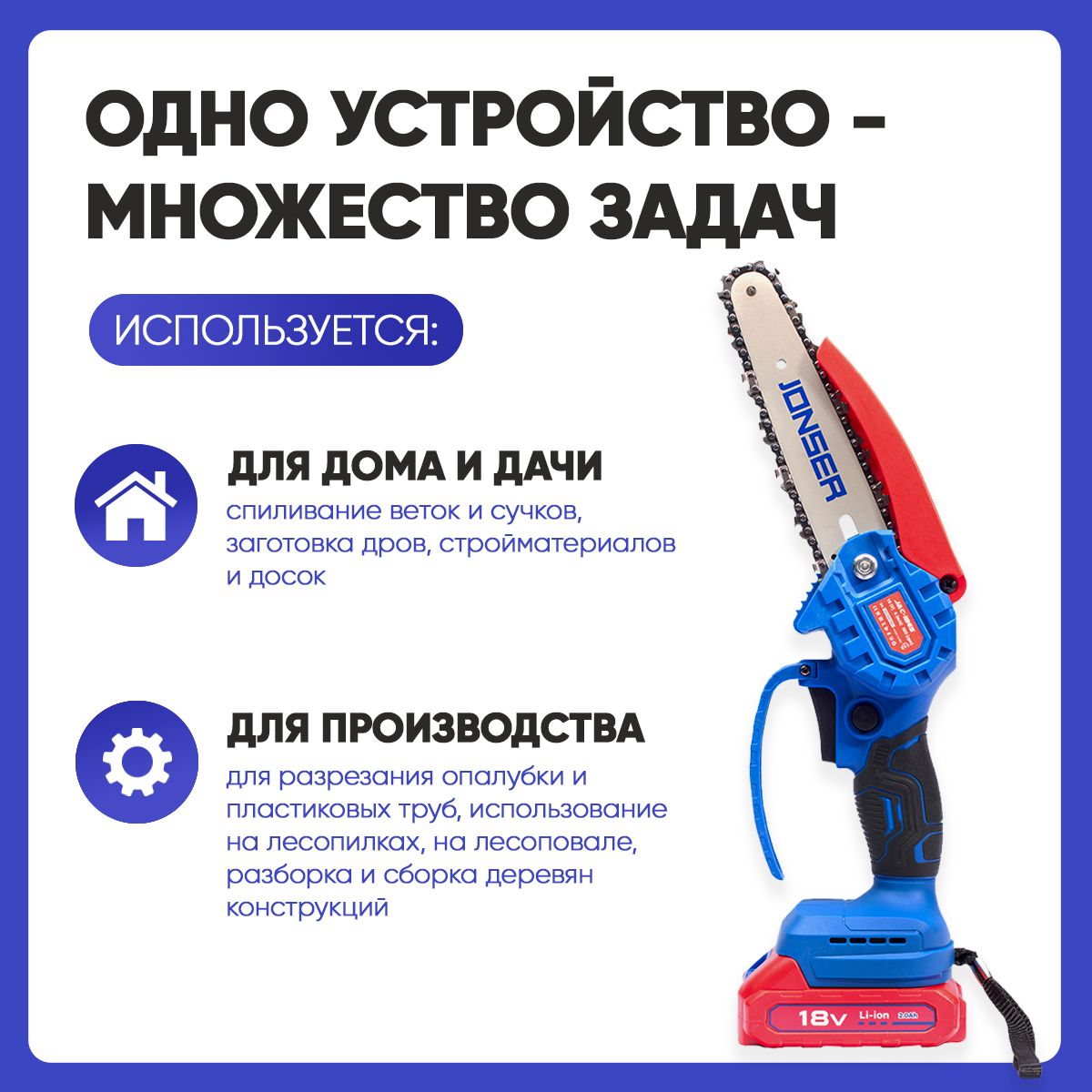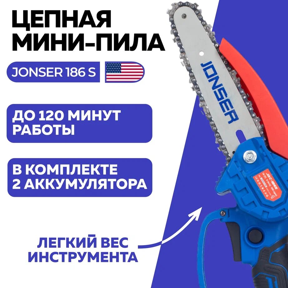 Пила аккумуляторная цепная мини JONSER JAC-186S интересное: