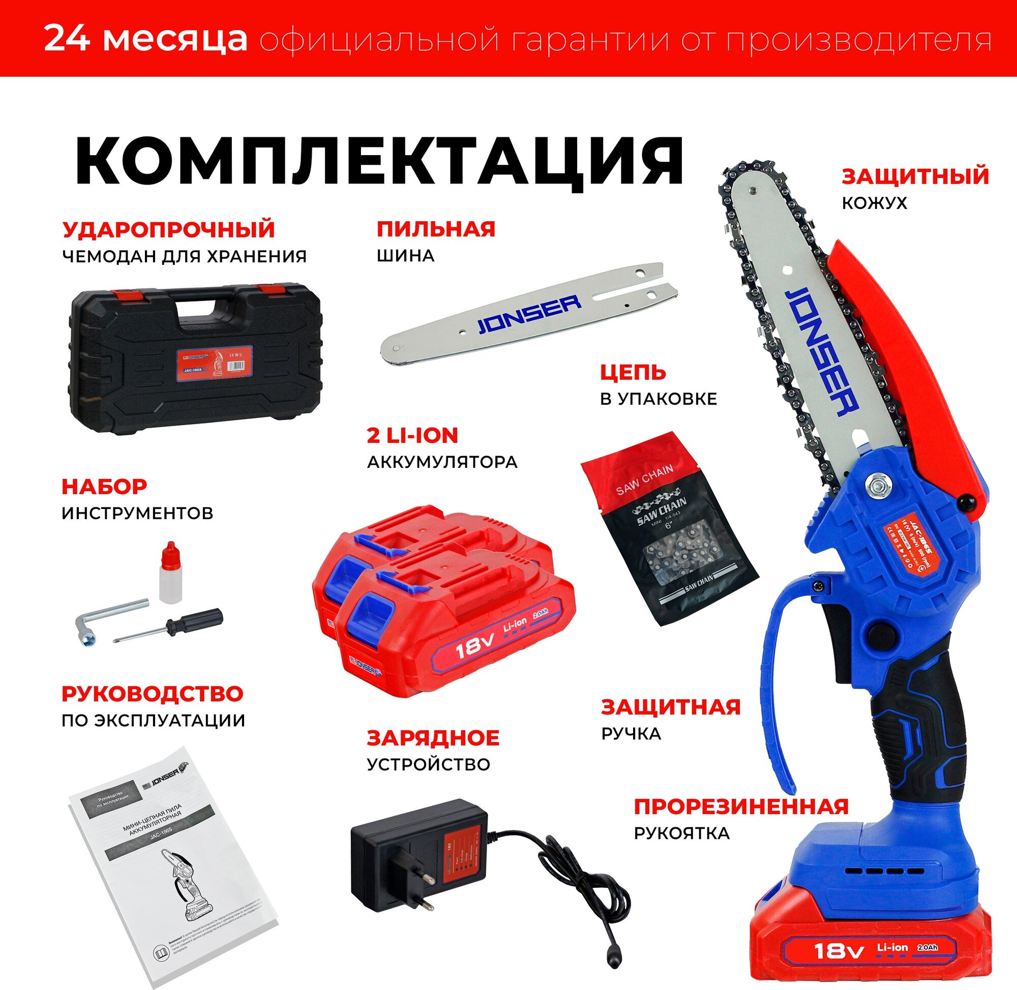 Ниже Вы можете прочитать отзывы на Пила аккумуляторная цепная мини JONSER JAC-186S, ознакомится с подробными характеристиками, посмотреть интересные обзоры и фотографии на Пила аккумуляторная цепная мини JONSER JAC-186S.