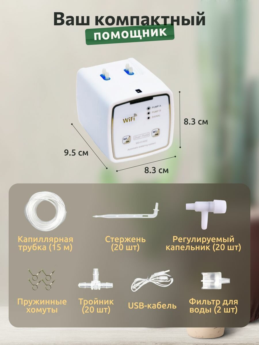 Капельный полив Classmark автополив для комнатных растений и цветов, дистанционное управление по Wi-Fi, питание от сети и батареек, белый