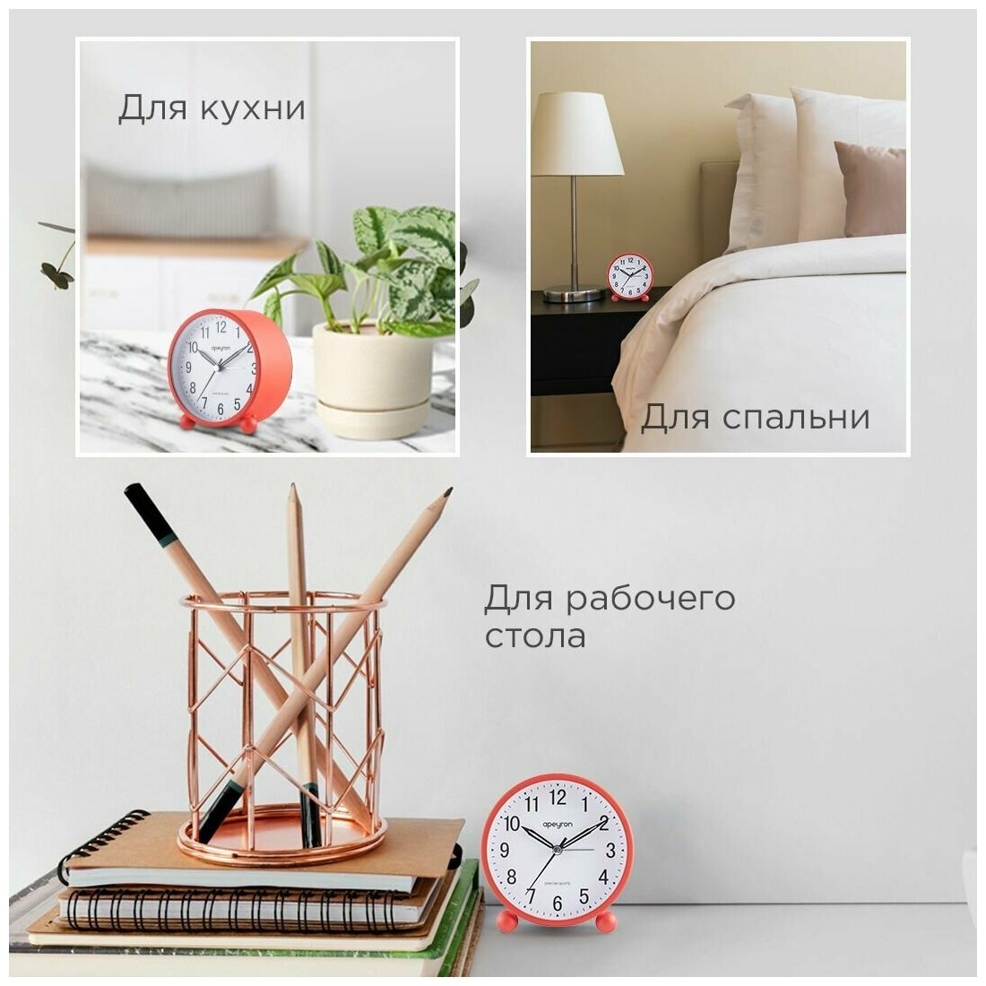 Часы-будильник с подсветкой в форме круга d-11.5 см, арабский циферблат, бесшумный механизм с плавным ходом, красный, интересное: