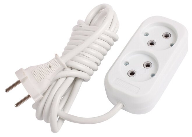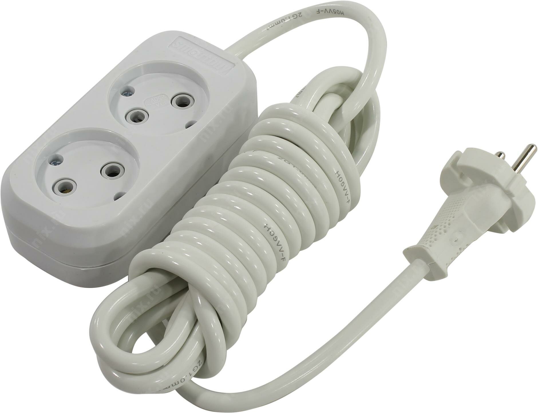 Удлинитель Smartbuy, 2 гнезда 3 м 10А/3,5 кВт без заземления ПВС 2х1,0 (SBE-10-2-03-N)
