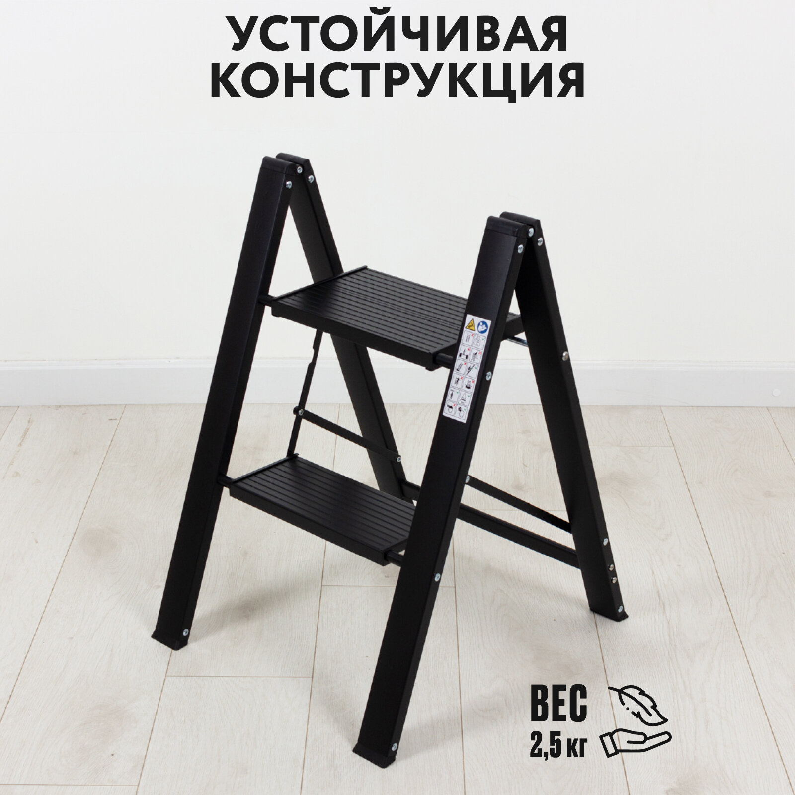 Стремянка "Joy Home" 2-х ступенчатая черная алюминий, пластик
