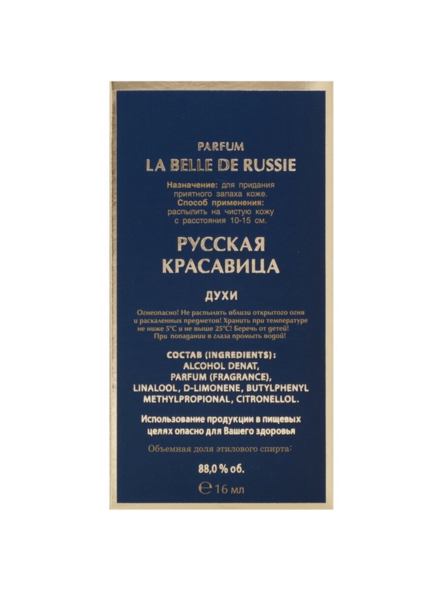 Новая Заря Женский Русская красавица (La Belle de Russie) Духи (parfum) спрей 16мл