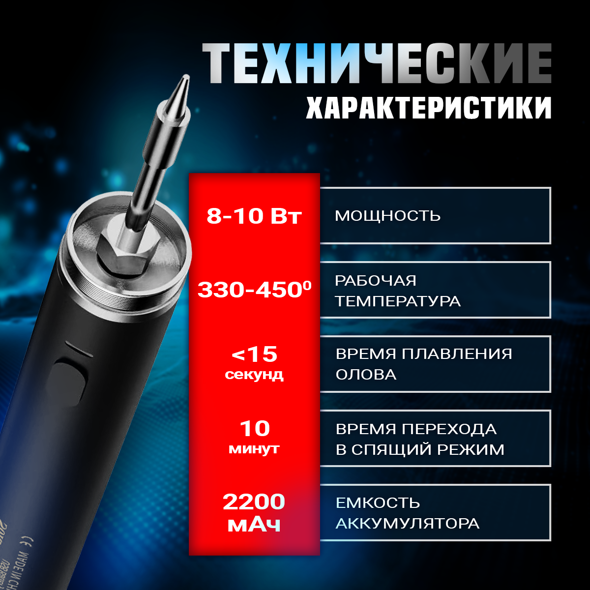 | Комплектация | Беспроводной паяльник, 2 жала; колпачок; подставка; |