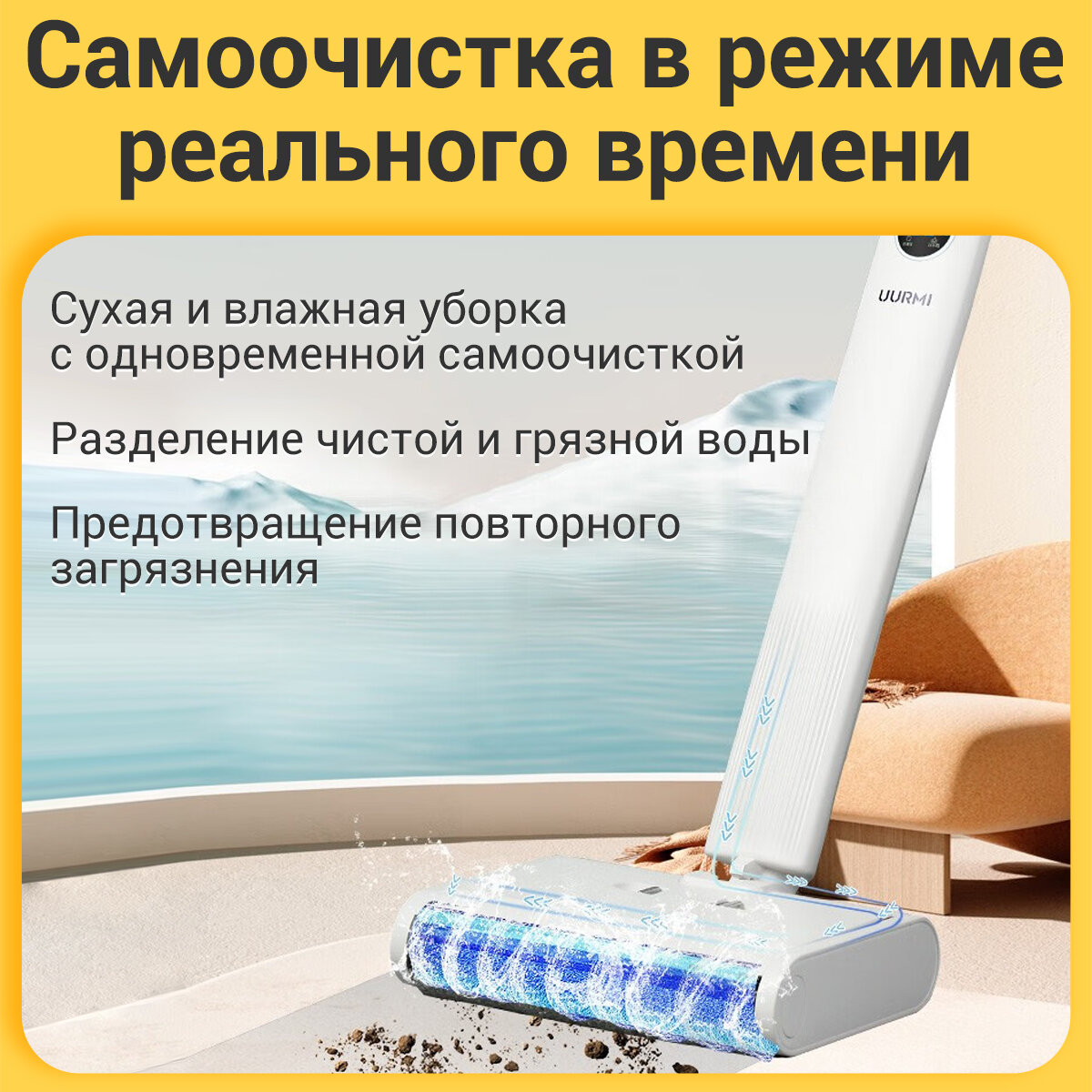 беспроводной пылесос UURMI F18 с влажной уборкой,Самоочистка, Наклон на 180°