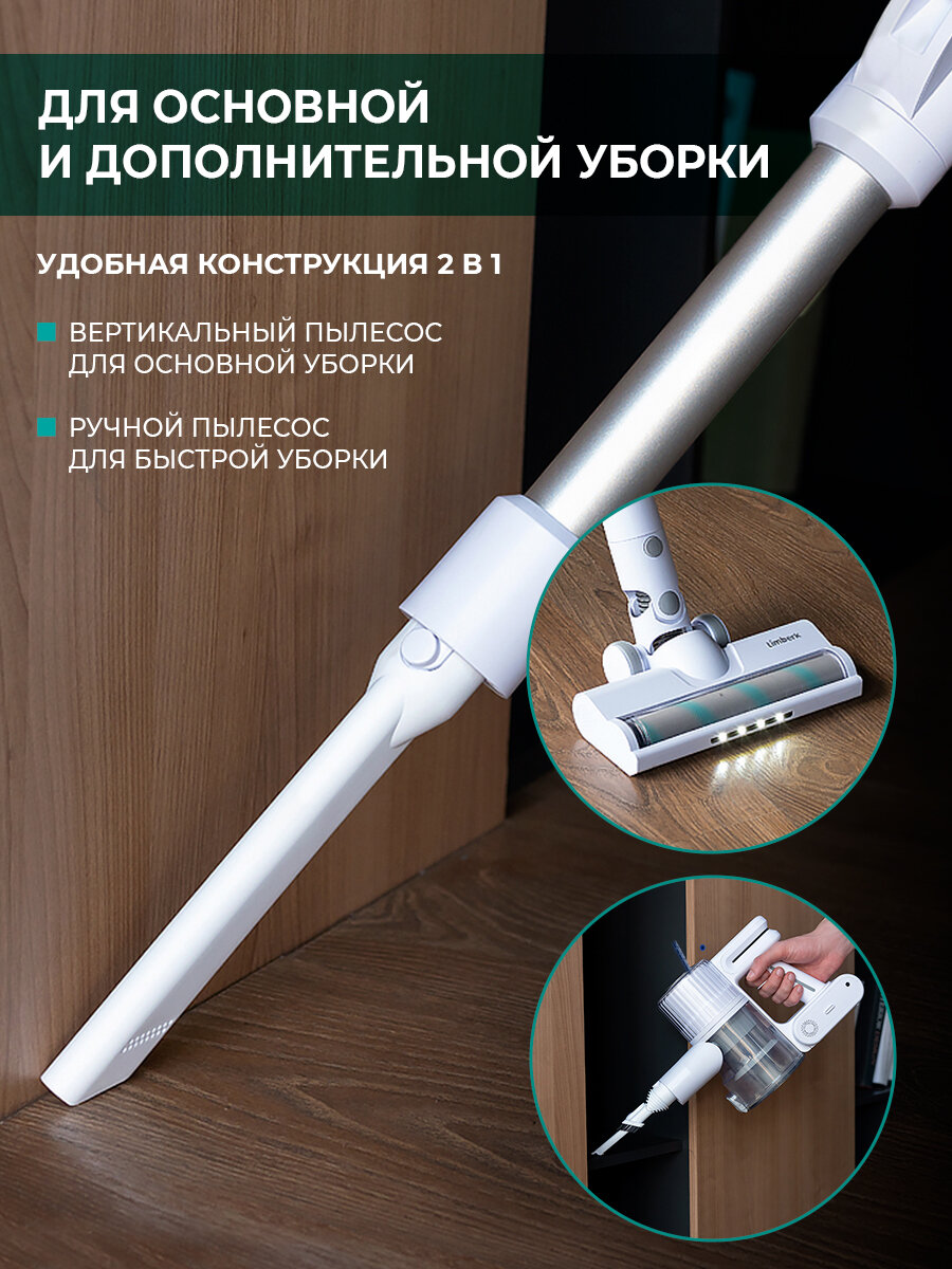 Пылесос вертикальный беспроводной Timberk T-VCH-75 , до 40 мин без подзарядки