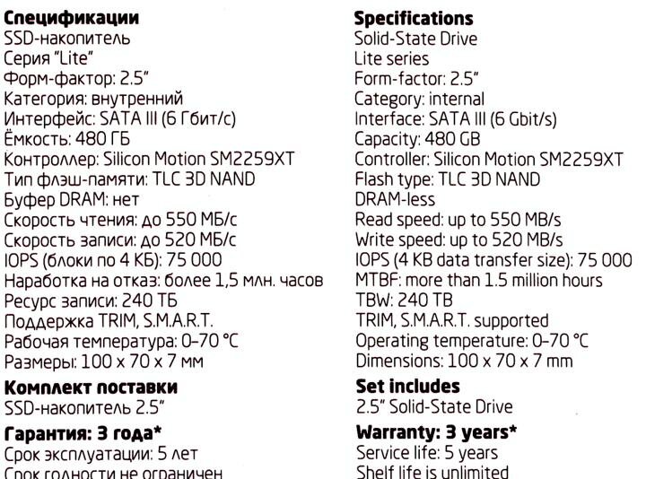 Ниже Вы можете прочитать отзывы на CBR SSD-480GB-2.5-LT22, Внутренний SSD-накопитель, серия "Lite", 480 GB, 2.5", SATA III 6 Gbit/s, SM2259XT, 3D TLC NAND, R/W speed up to 550/520 MB/s, TBW (TB) 240, ознакомится с подробными характеристиками, посмотреть интересные обзоры и фотографии на CBR SSD-480GB-2.5-LT22, Внутренний SSD-накопитель, серия "Lite", 480 GB, 2.5", SATA III 6 Gbit/s, SM2259XT, 3D TLC NAND, R/W speed up to 550/520 MB/s, TBW (TB) 240.