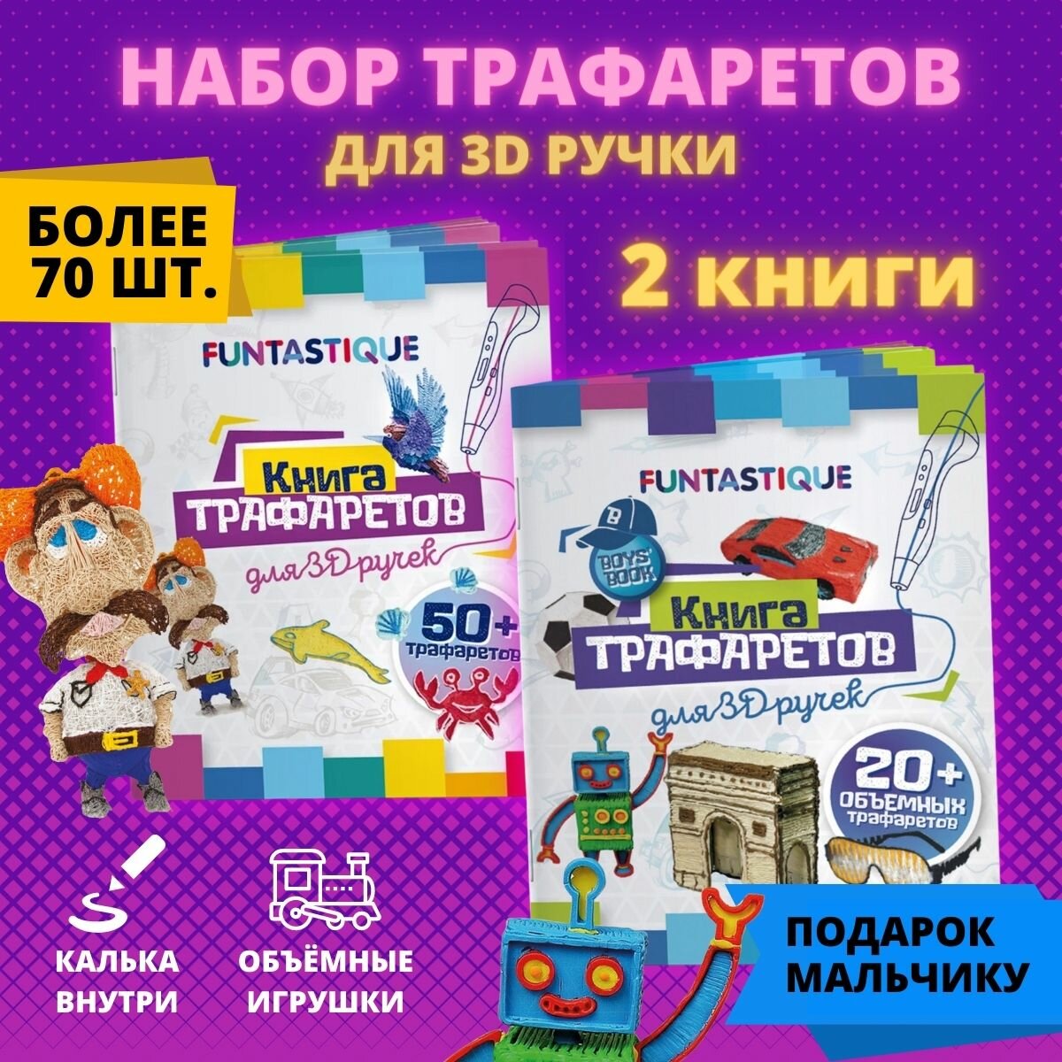 Набор из двух трафаретов для 3D ручек Funtastique (Мальчик+общий) книга А5, подарок ребенку, мальчику, набор для творчества 3 д, 2 шт. интересное: