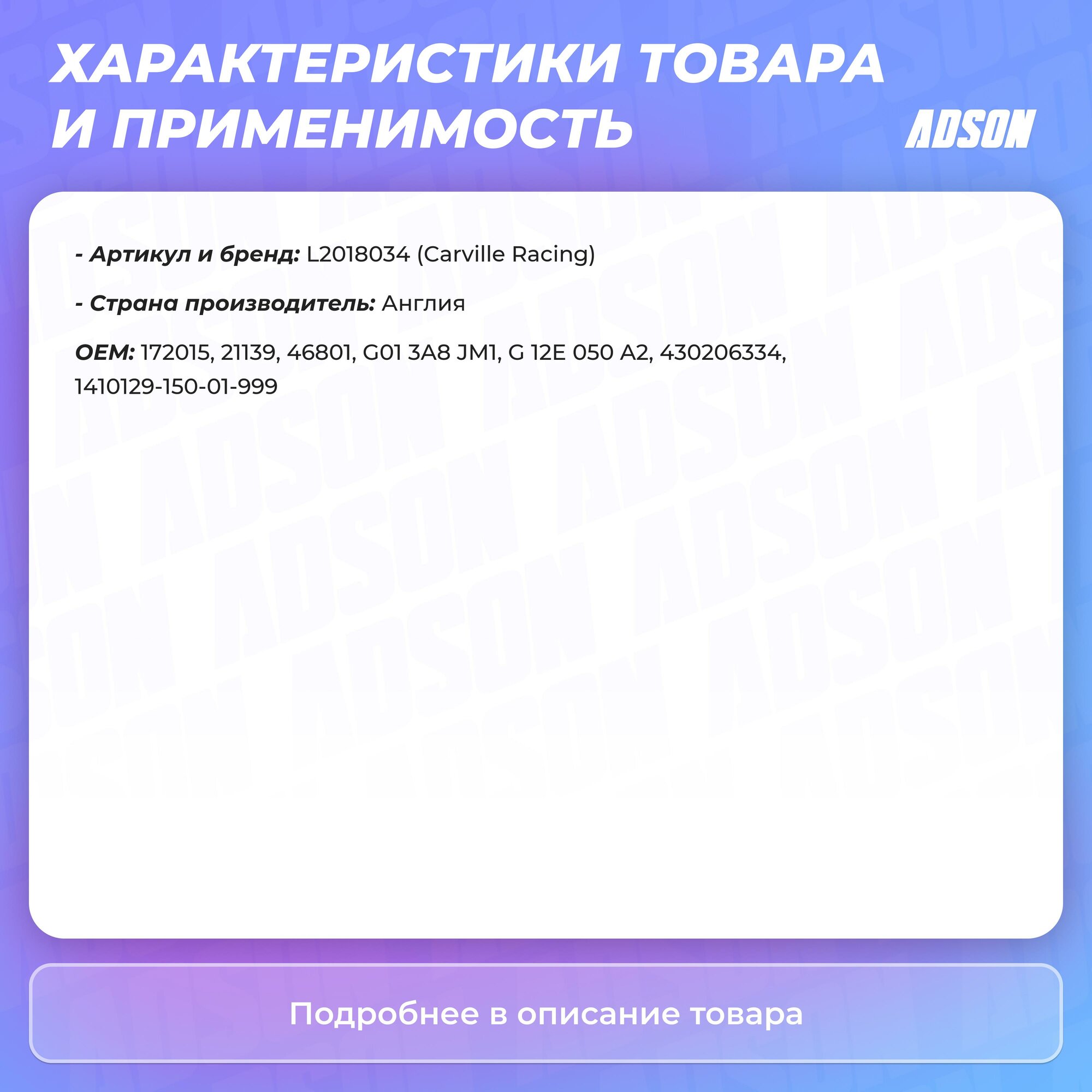 | Бренд | CARVILLE RACING |