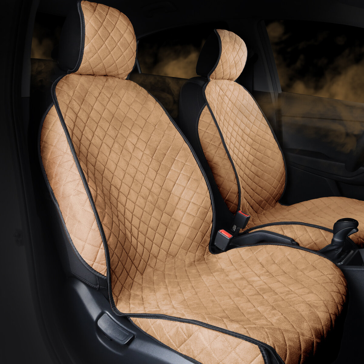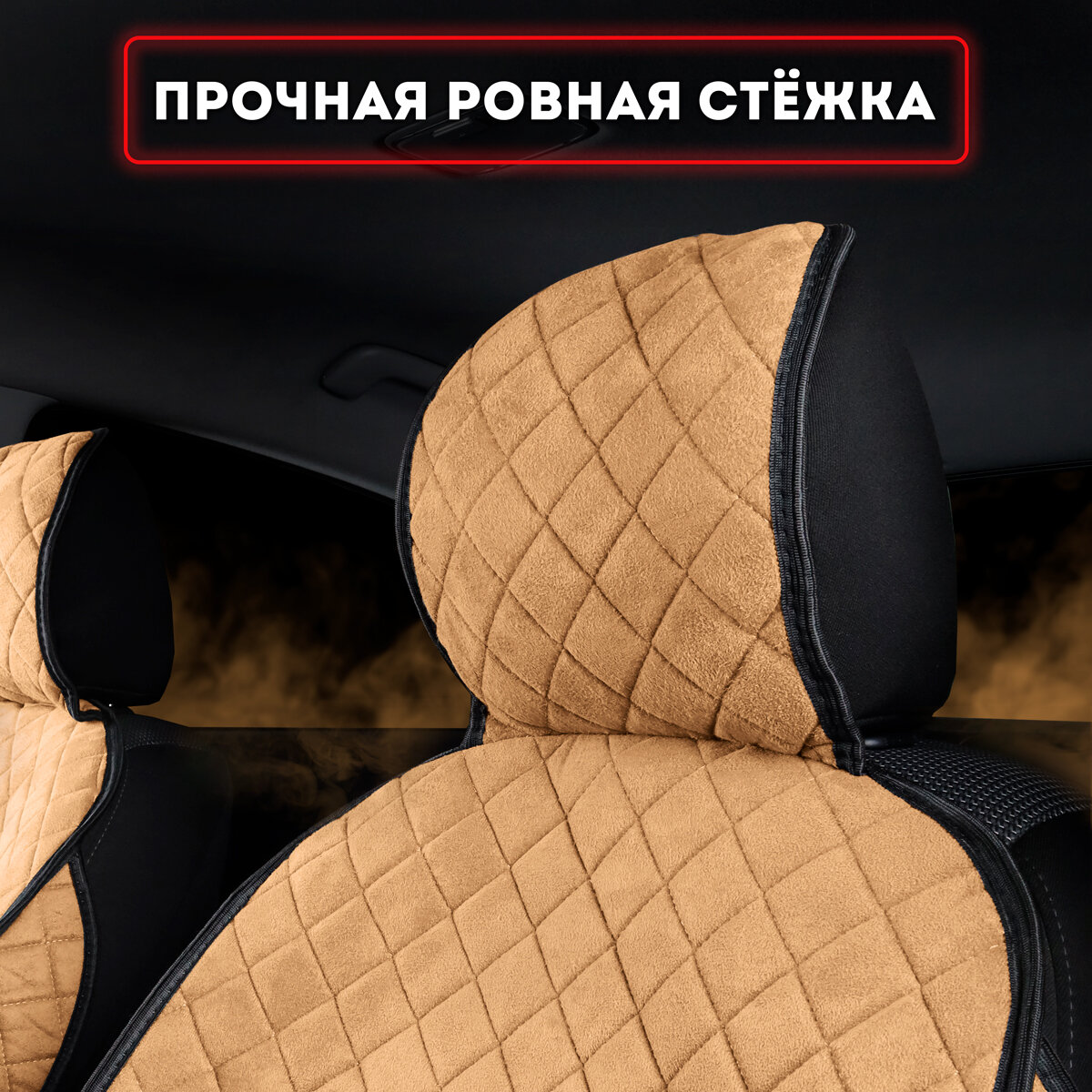 CarCape/ Комплект накидок на весь салон автомобиля из алькантары с боками и юбкой/ авточехлы универсальные. Модель SOFIA+PK. бежевый