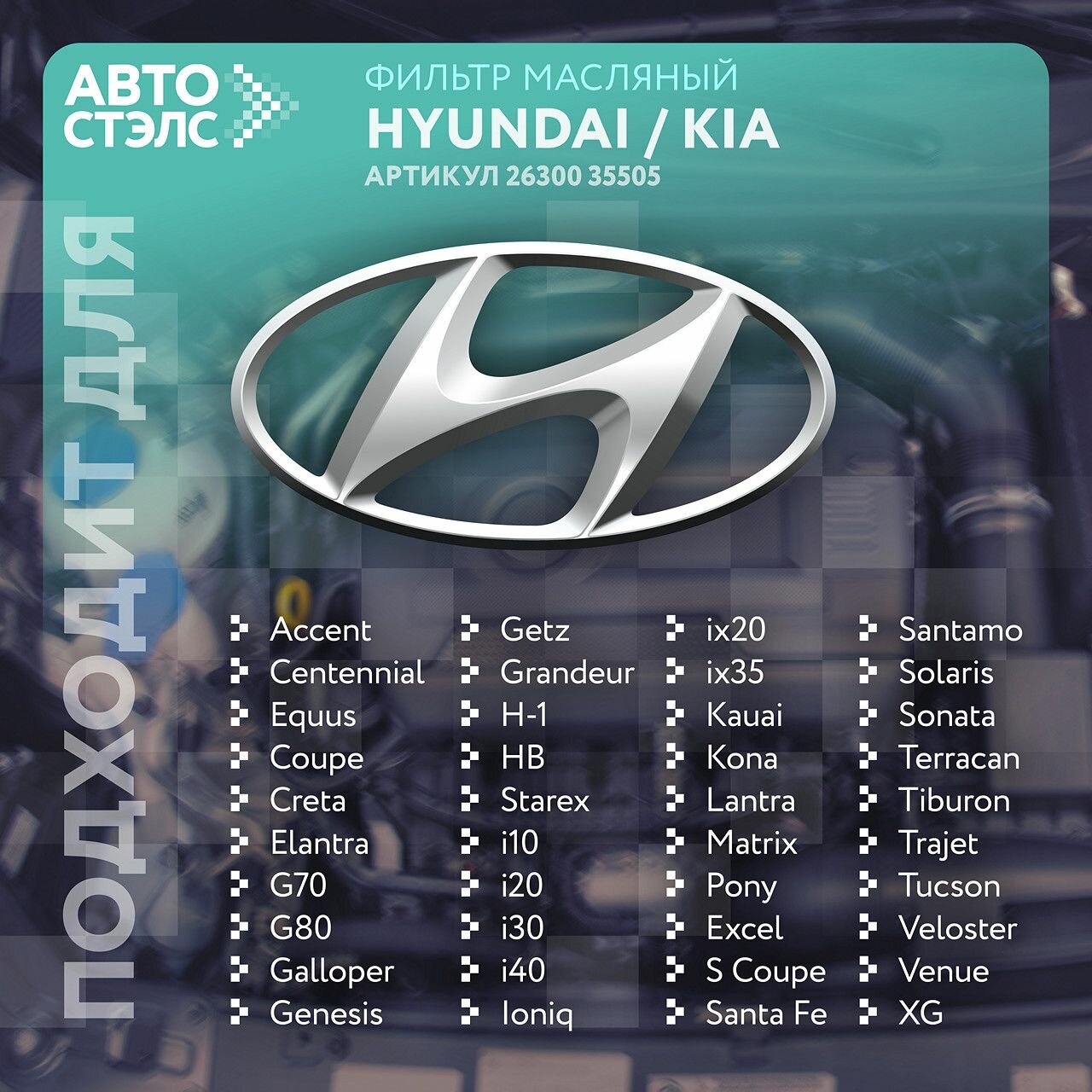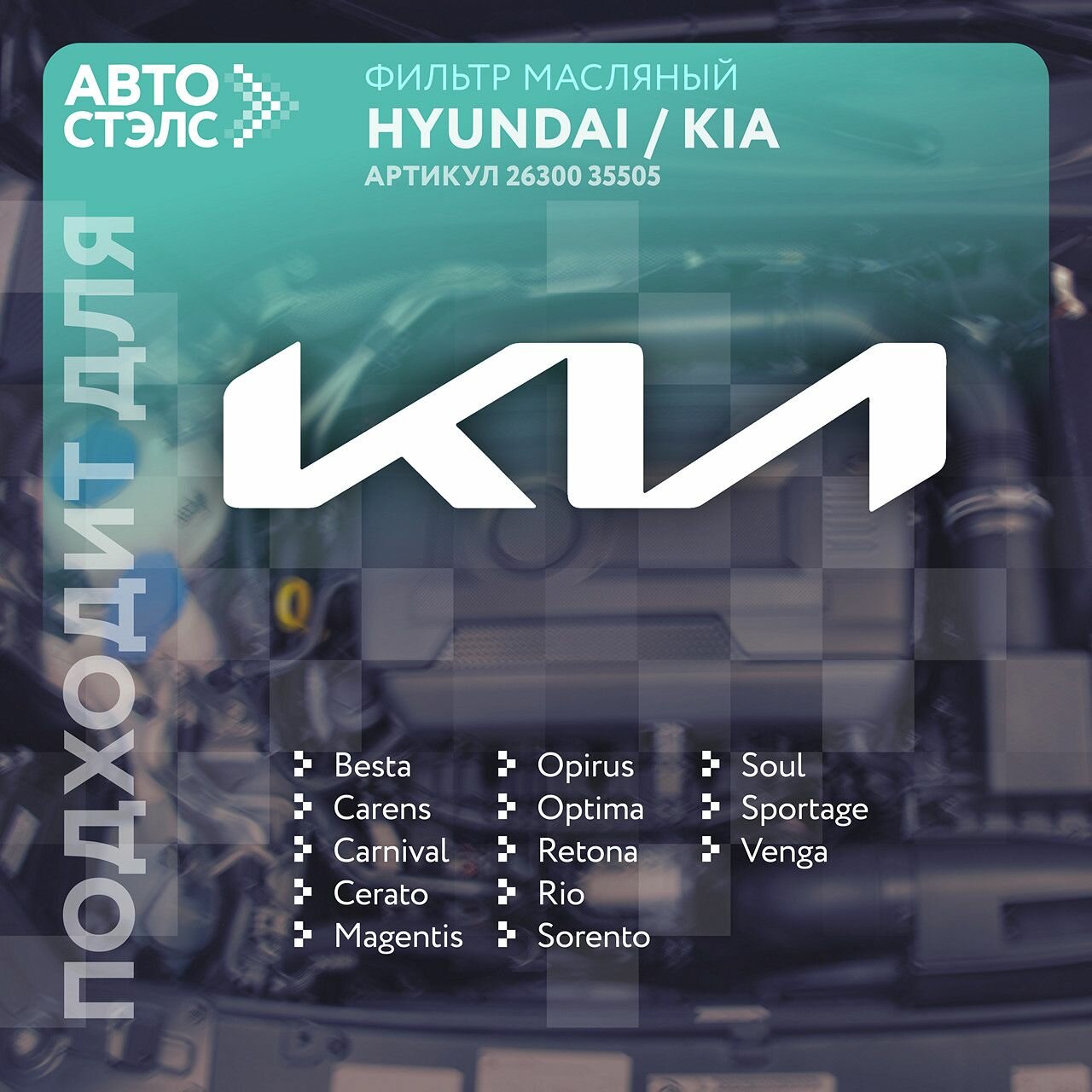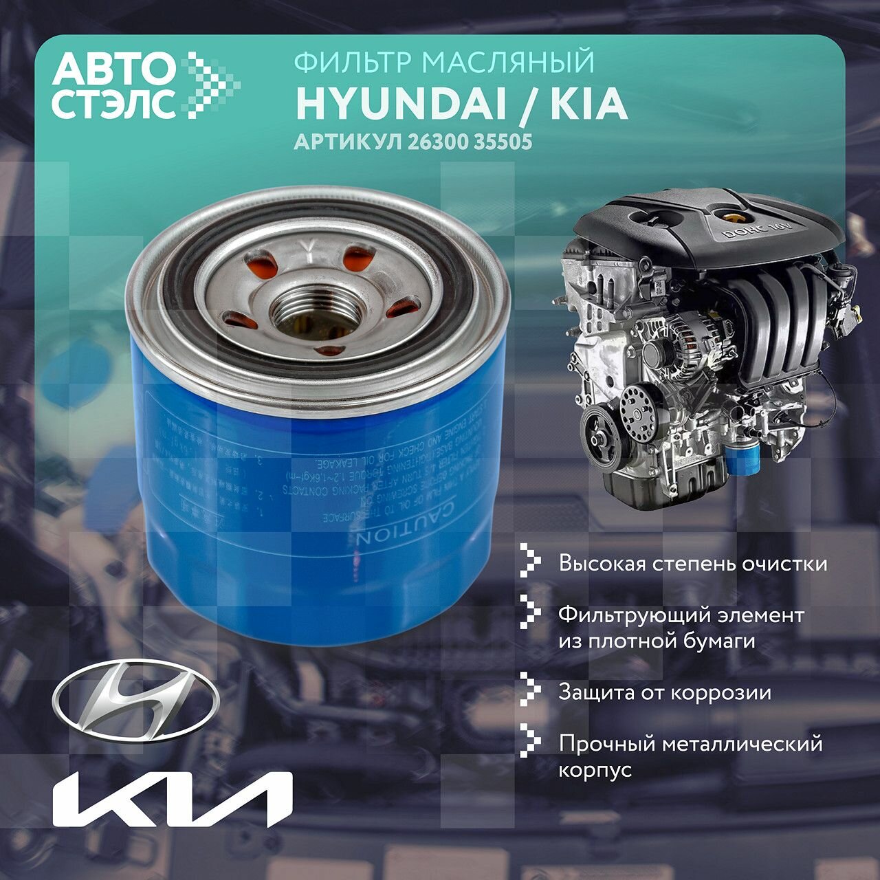 Масляный фильтр (26300-35505) Solaris, Santa Fe, Sonata, Elantra / Kia Rio, Ceed, Sportage, Sorento
