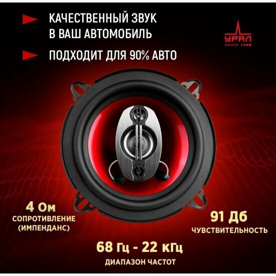 Колонки автомобильные URAL Классик АС-К1347 120Вт, 91дБ, 4Ом, 13см, коаксиальные четырехполосные