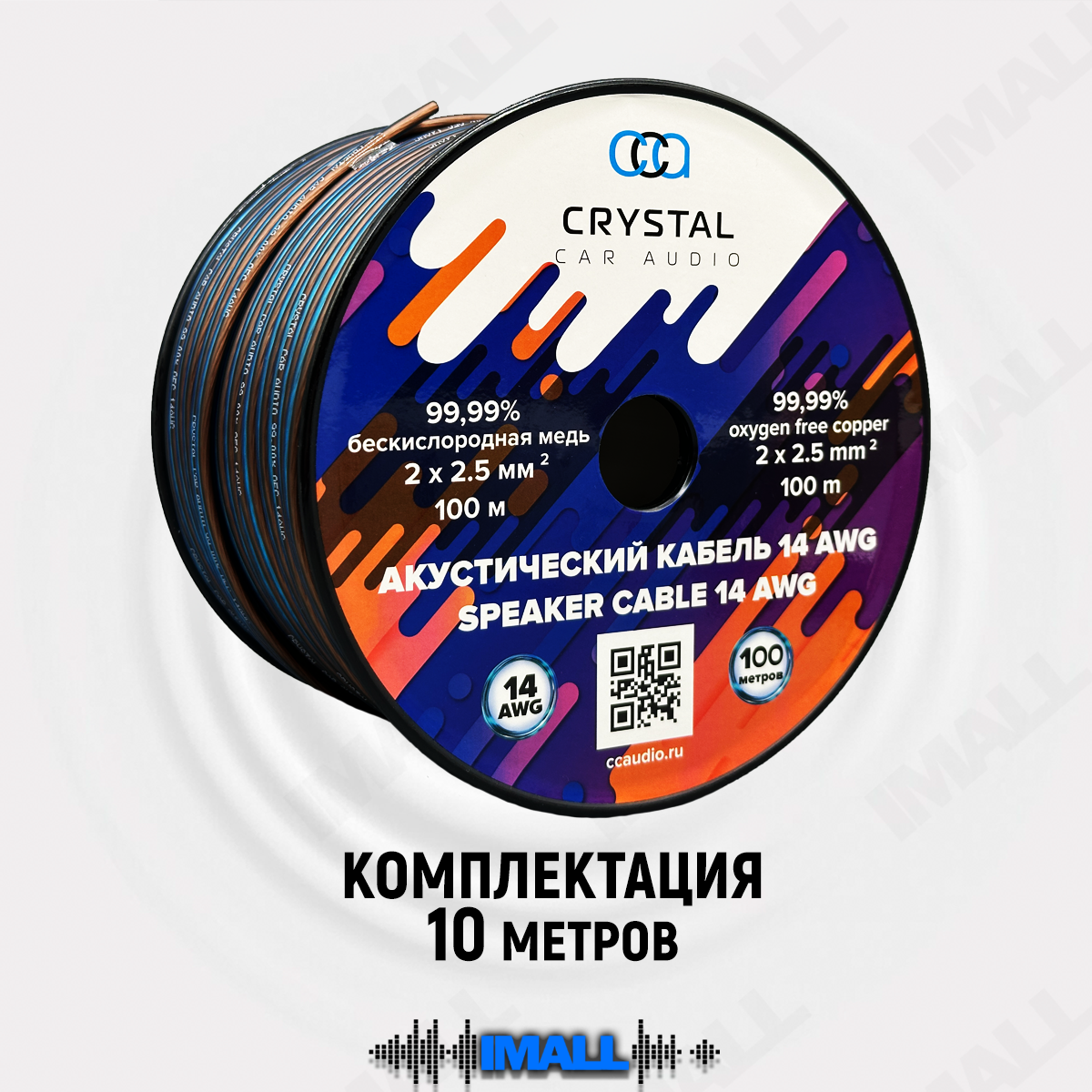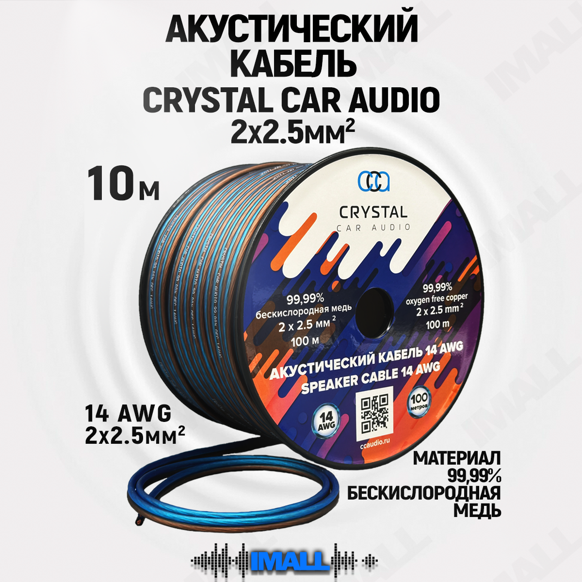 Акустические медные провода для динамиков, Crystal Car Audio, 10 метров, 14 AWG