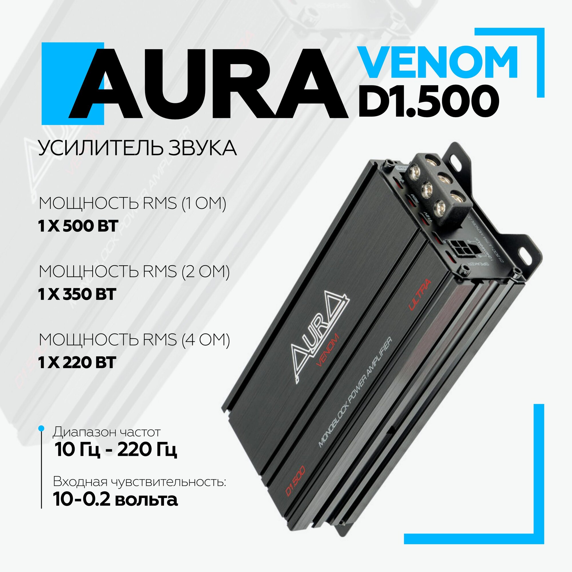 Автомобильный усилитель Aura VENOM-D1.500 ULTRA одноканальный / Моноблок для сабвуфера интересное: