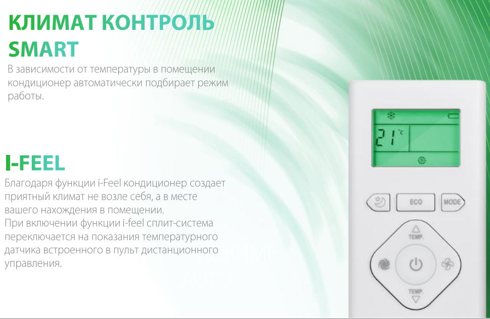 | Дополнительные режимы | бриз / вентиляция / ночной / осушение / экорежим |