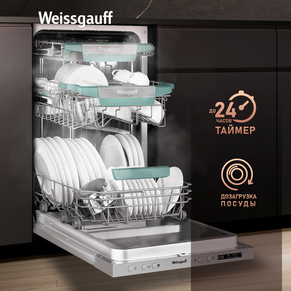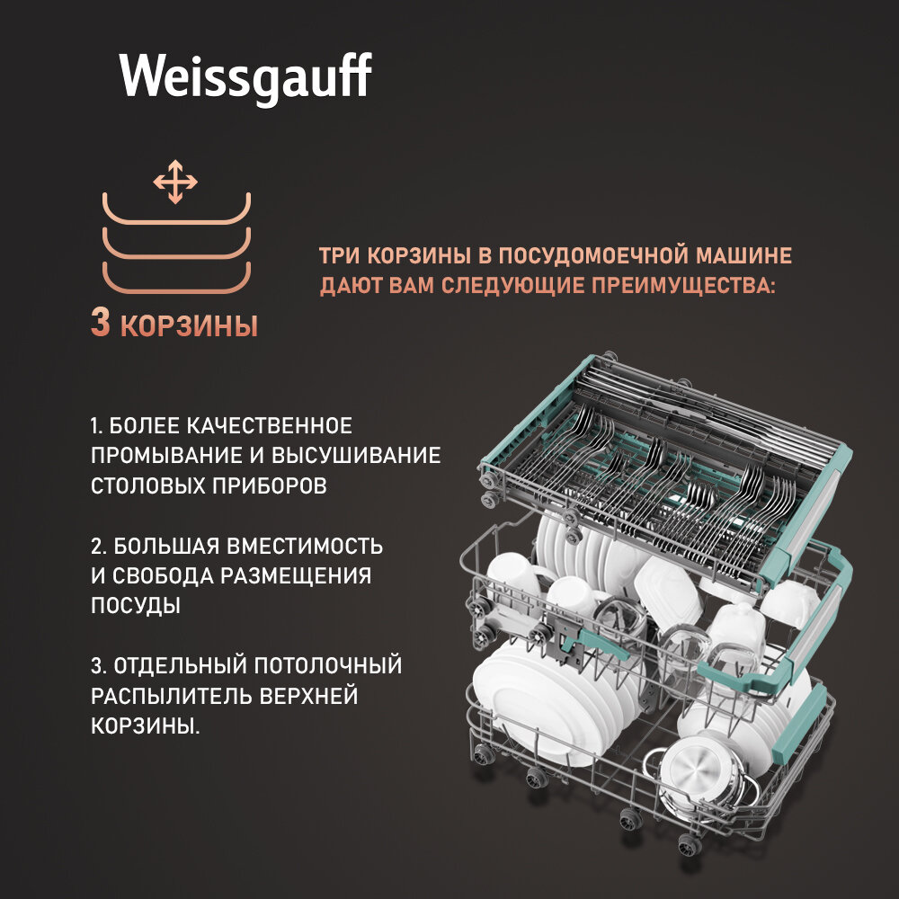Встраиваемая посудомоечная машина с проекцией времени на полу Weissgauff BDW 4139 D Timer Floor,3года гарантии, 3 корзины, 10 комплектов, 7 программ, Внутренняя подсветка, Половинная загрузка, Быстрый режим, Авто программа, Дополнительная сушка интересное:
