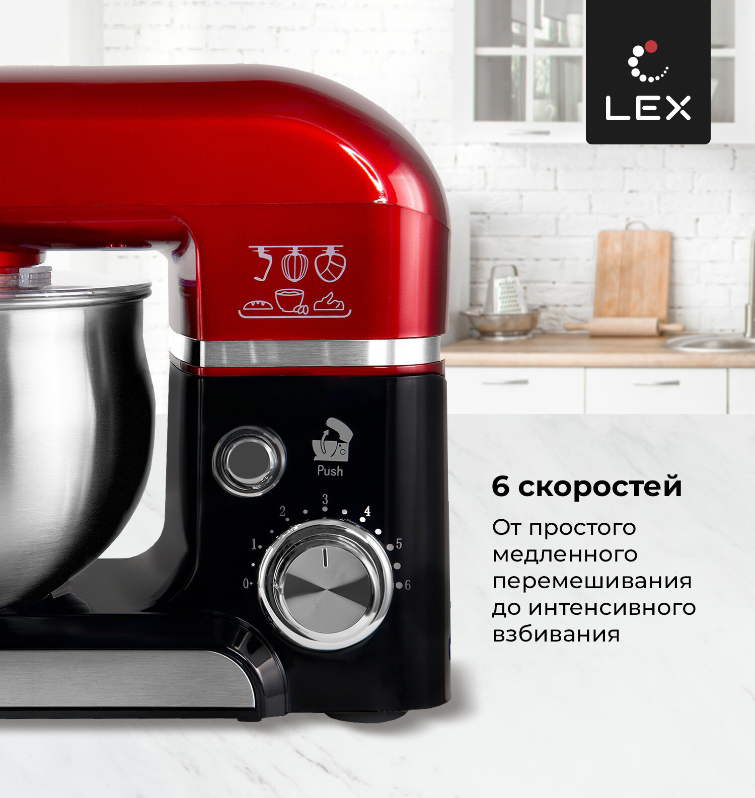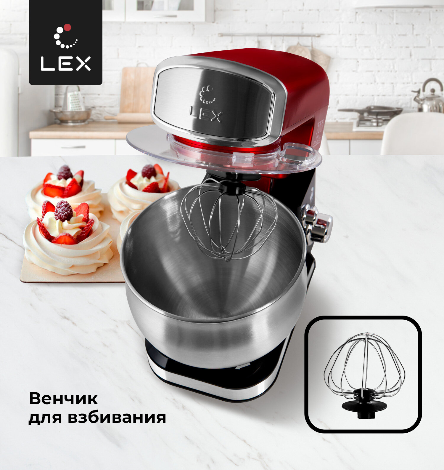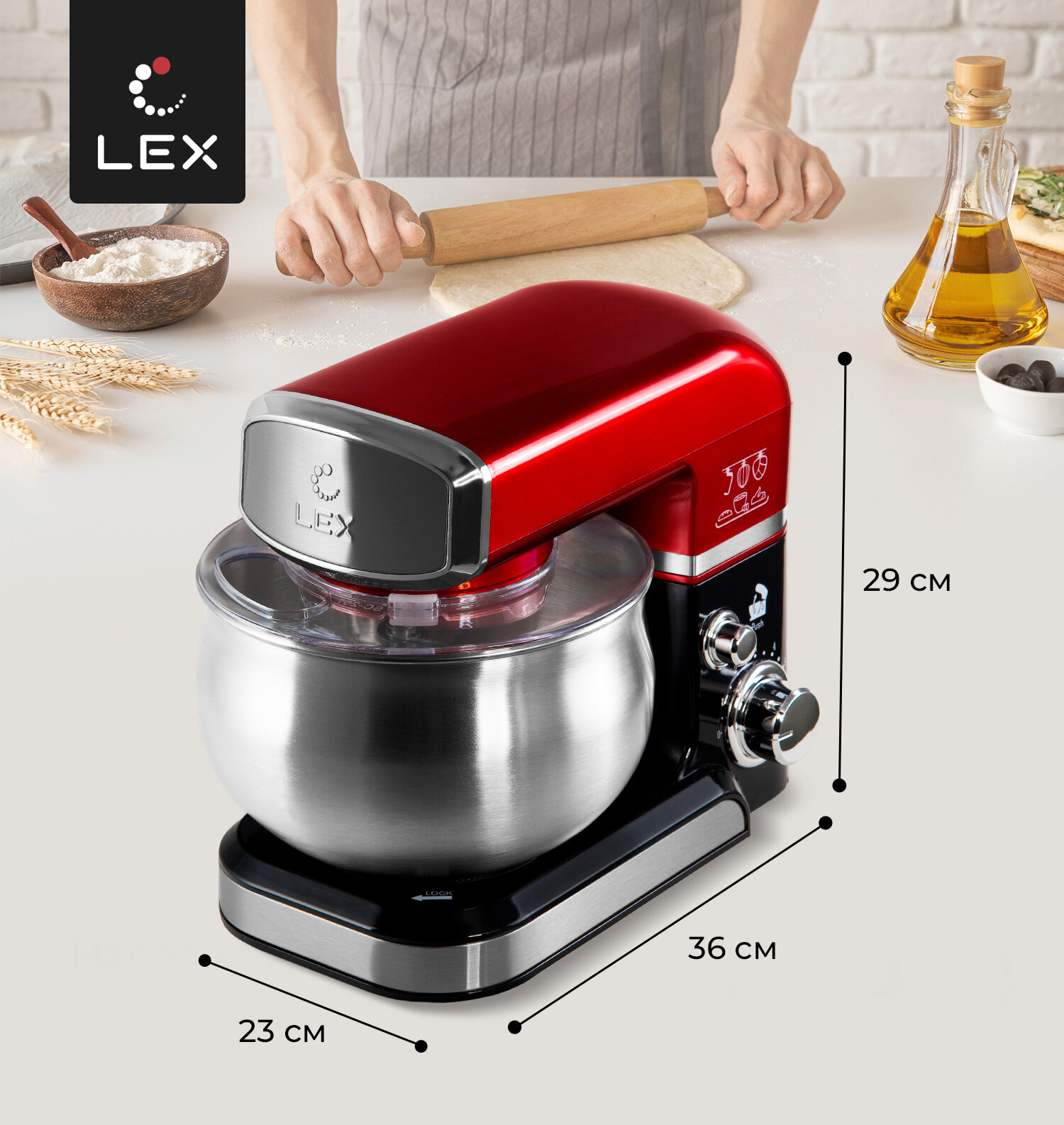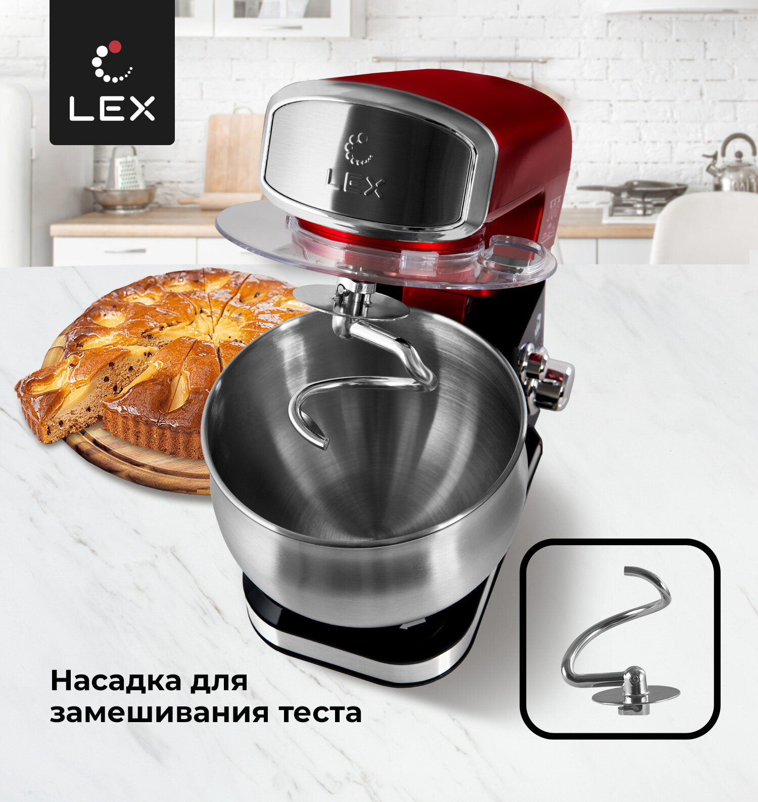 Миксер планетарный LEX LXMX 4134,Защита от перегрева, Защита от перегрузки, Прорезиненные нескользящие ножки, Объем чаши-3,5л.