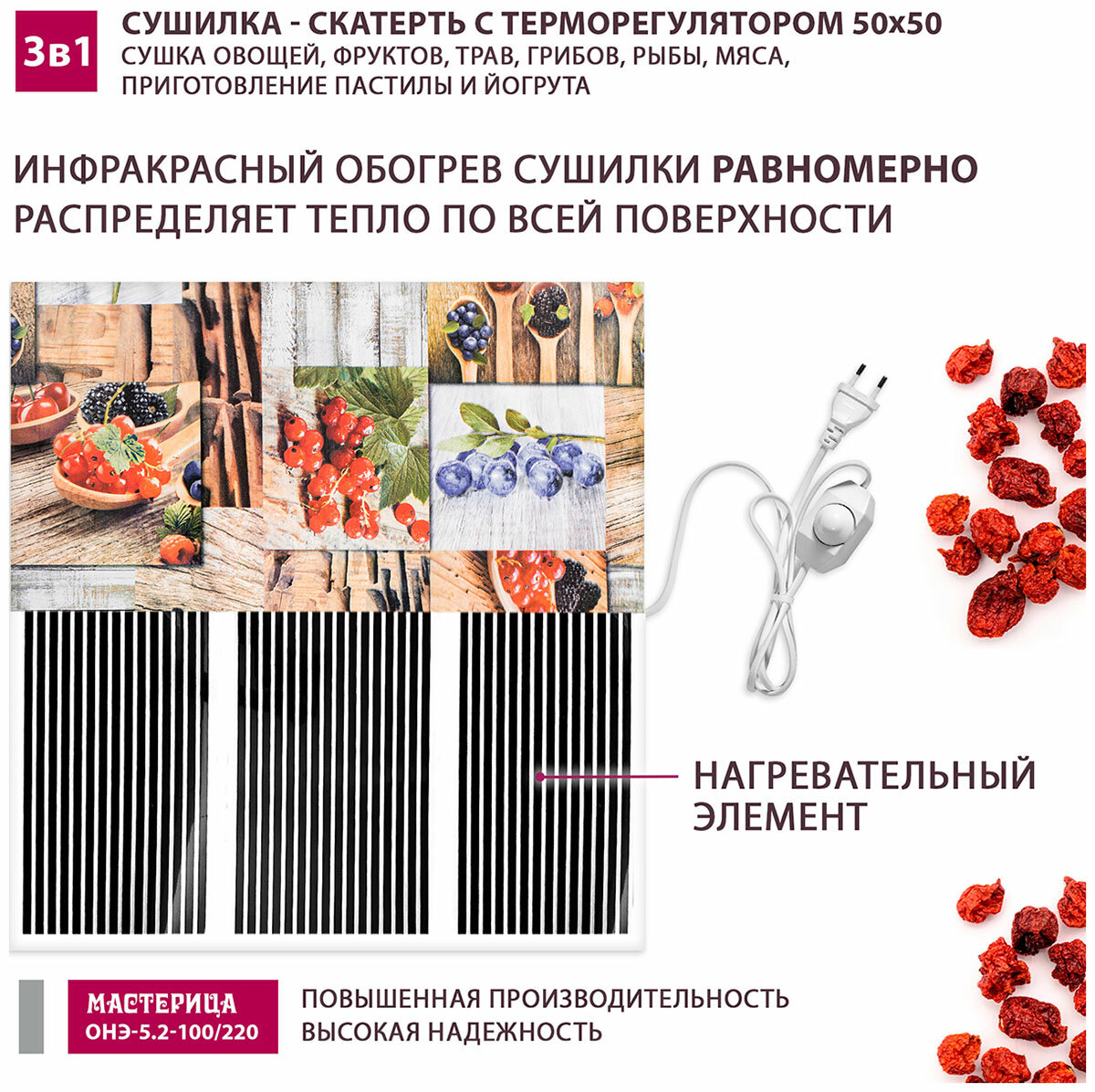 Сушилка - скатерть для овощей и фруктов Мастерица ОНЭ-5.2-100/220 50х50см с терморегулятором