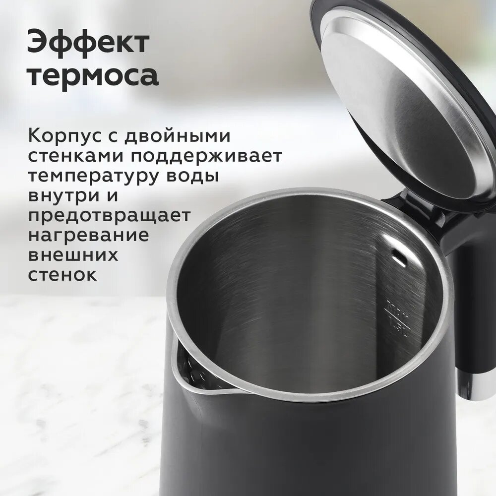 Чайник электрический BQ KT1720P Черный / Двухслойный / 1.5 л 2200 Вт