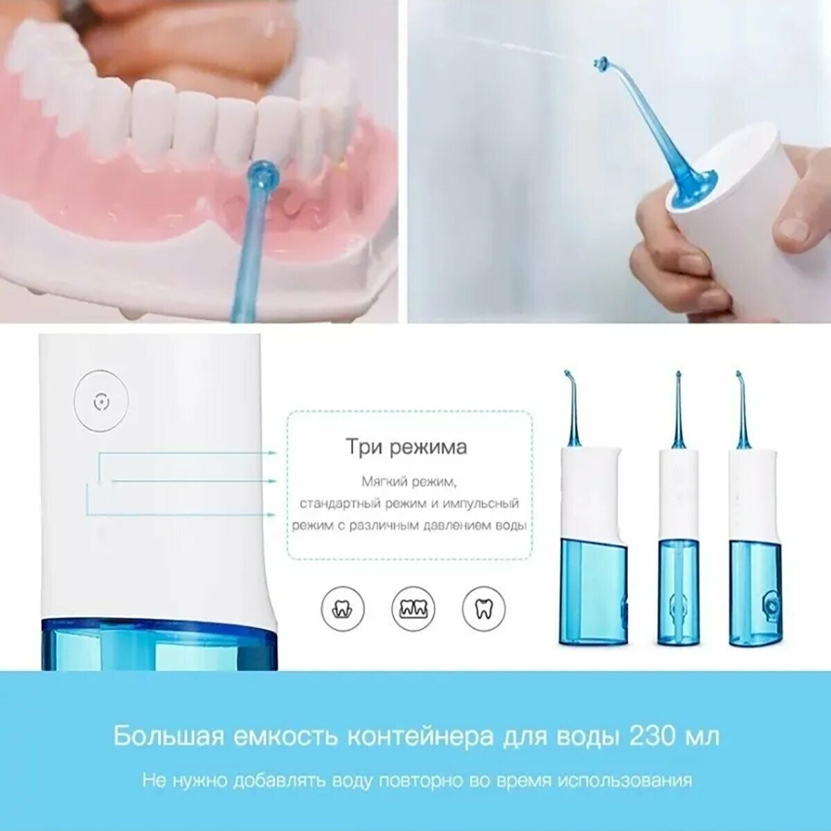 Ирригатор для полости рта Soocas W3 PRO, (4 насадки), голубой