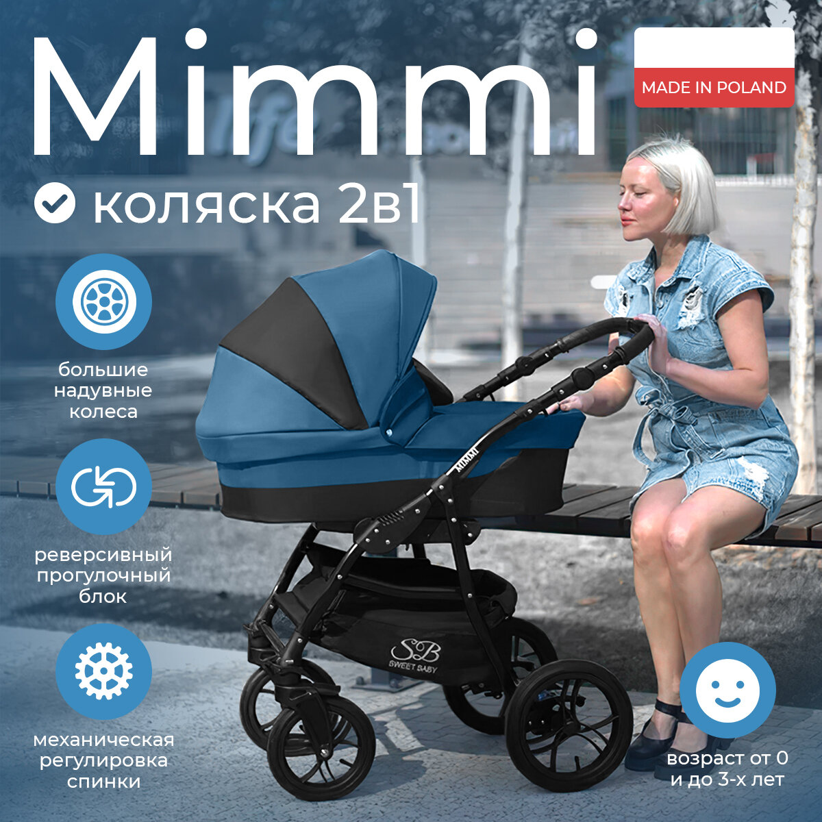 Коляска 2в1 Sweet Baby Mimmi Blue