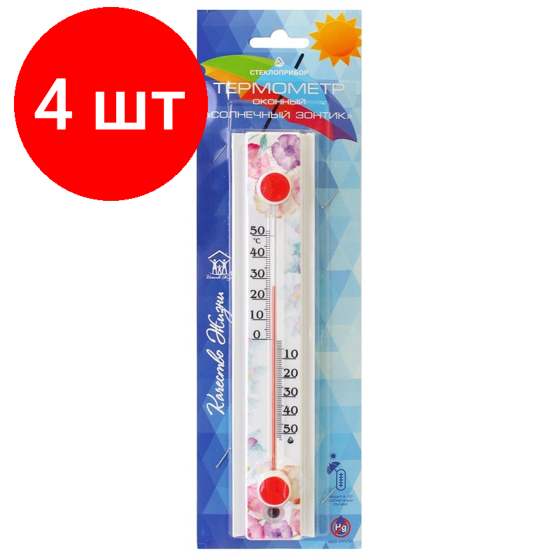 Купить Комплект 4 штук, Термометр оконный на липучке 22х4.5х3 см 466380
