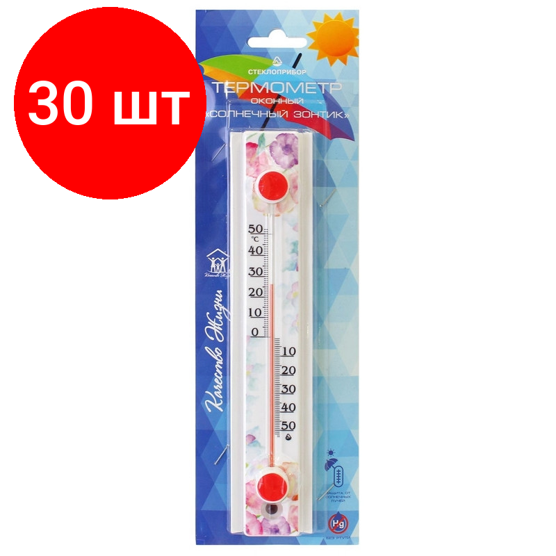 Купить Комплект 30 штук, Термометр оконный на липучке 22х4.5х3 см 466380