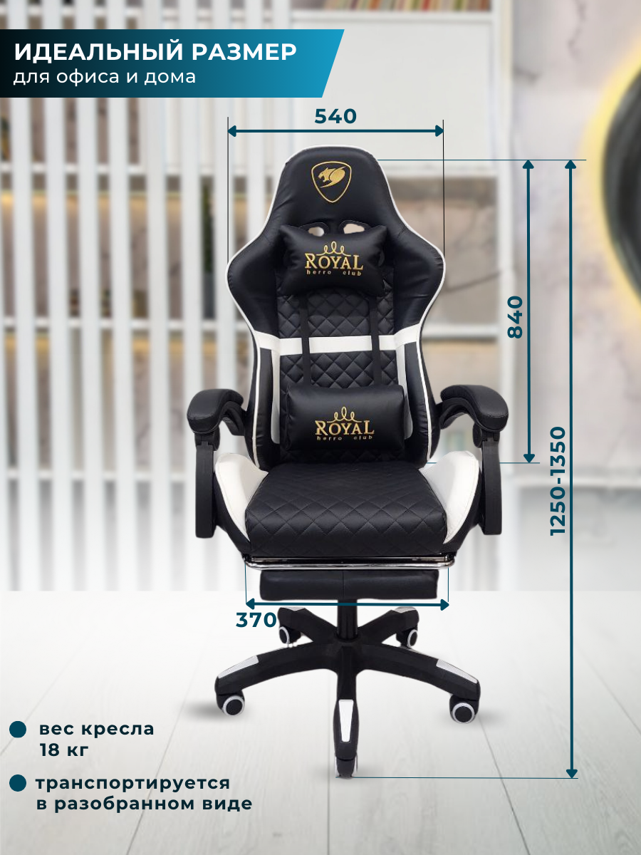 Игровое компьютерное кресло из экокожи с подставкой для ног (черно-белое) интересное: