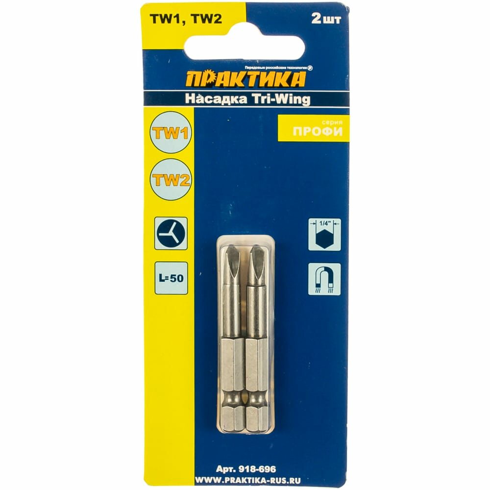 Бита отверточная ПРАКТИКА "Профи" Tri Wing 1x50мм, 2x50мм (2шт), блистер (918-696)