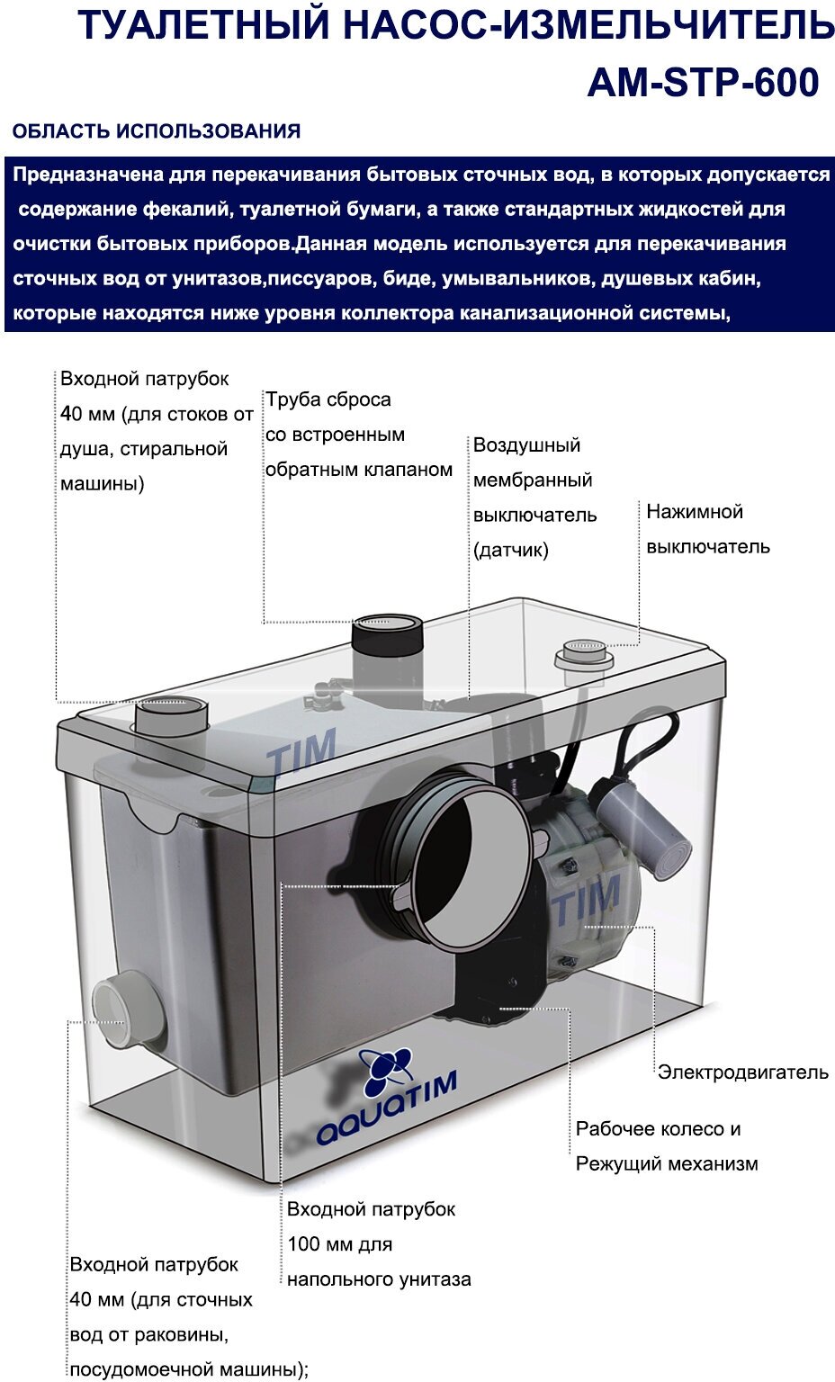 Канализационная установка фекальный насос AquaTIM AM-STP-600 (600 Вт) белый