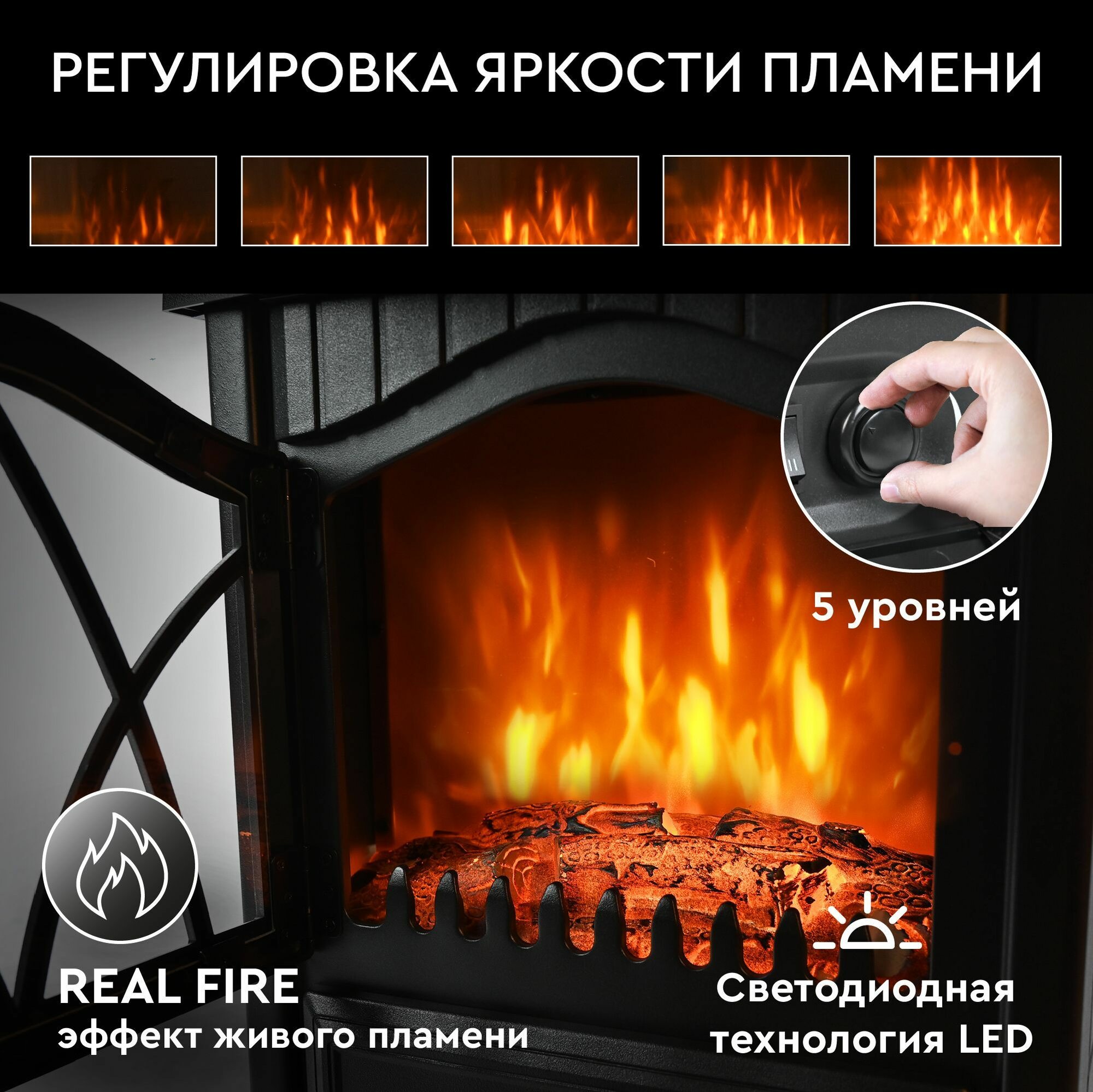 | Особенности | дистанционное управление, работа от сети, эффект живого огня |