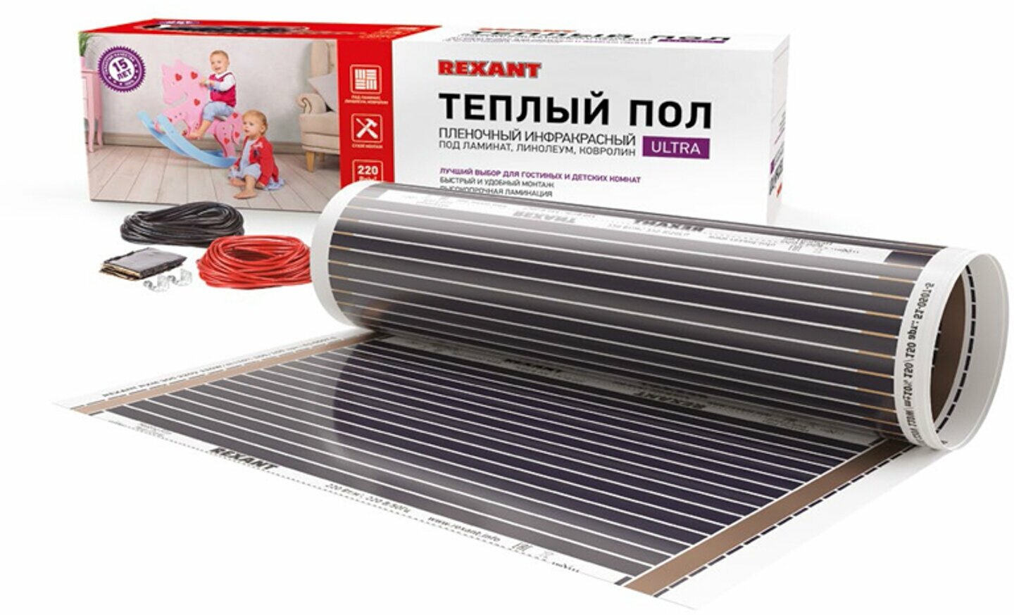 Пленочный теплый пол REXANT Ultra RXM 220, площадь 2.5 м2, 0.5х5 м, 550 Вт интересное: