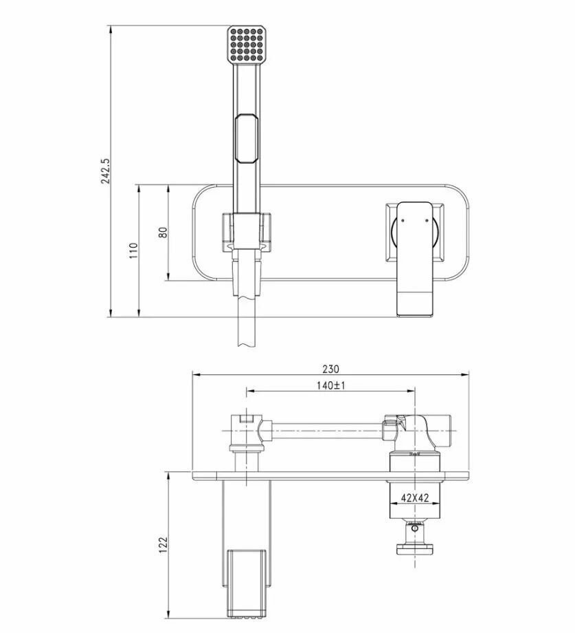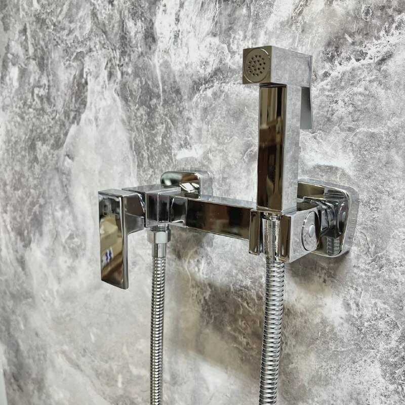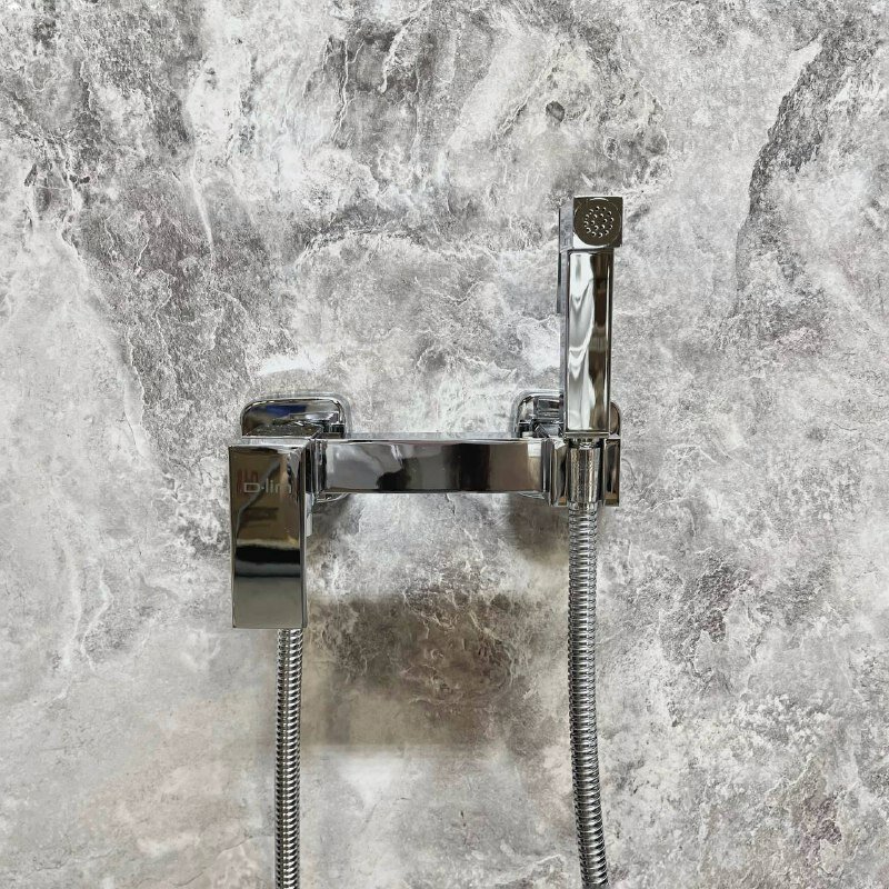 Смеситель с гигиеническим душем, лейкой, настенный D-LIN D180201 хромированный, латунь.