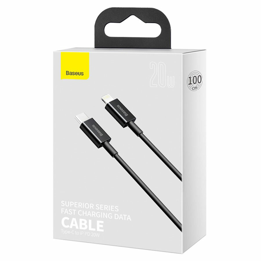 Кабель для быстрой зарядки и передачи данных BASEUS Superior Series, Type-C to Lightning, PD20W, 1 м, Черный, CATLYS-A01