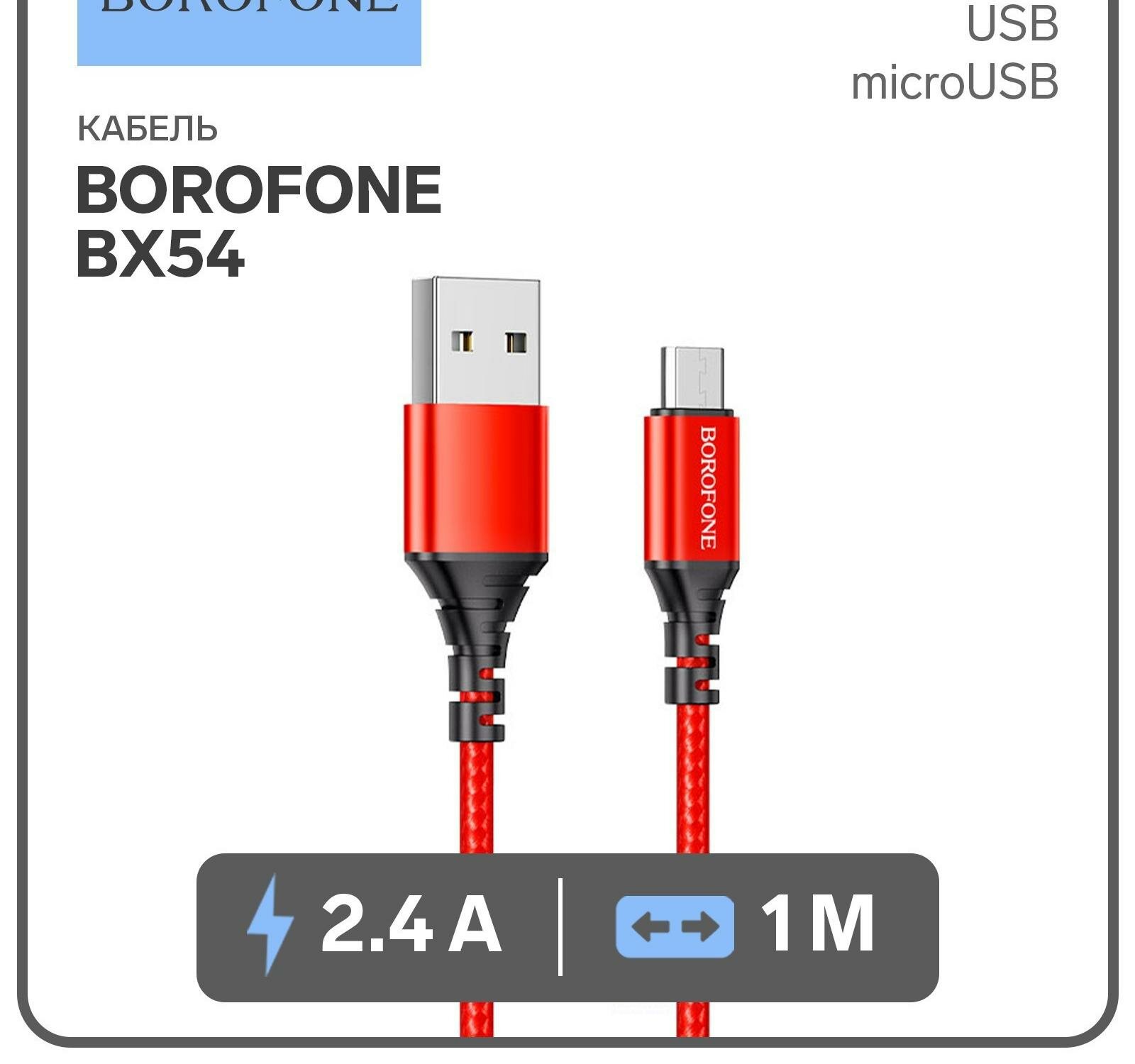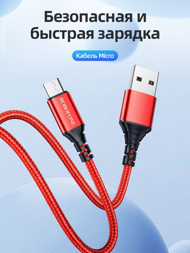 Borofone Кабель Borofone BX54, microUSB - USB, 2.4 А, 1 м, нейлоновая оплётка, красный интересное: