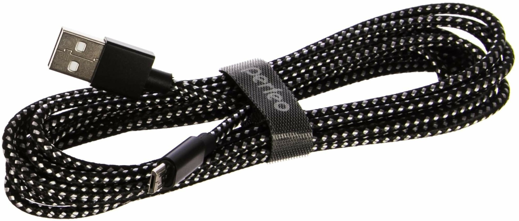 Кабель PERFEO USB2.0 A вилка - Micro USB вилка, черно-белый, длина 3 м. (U4802)